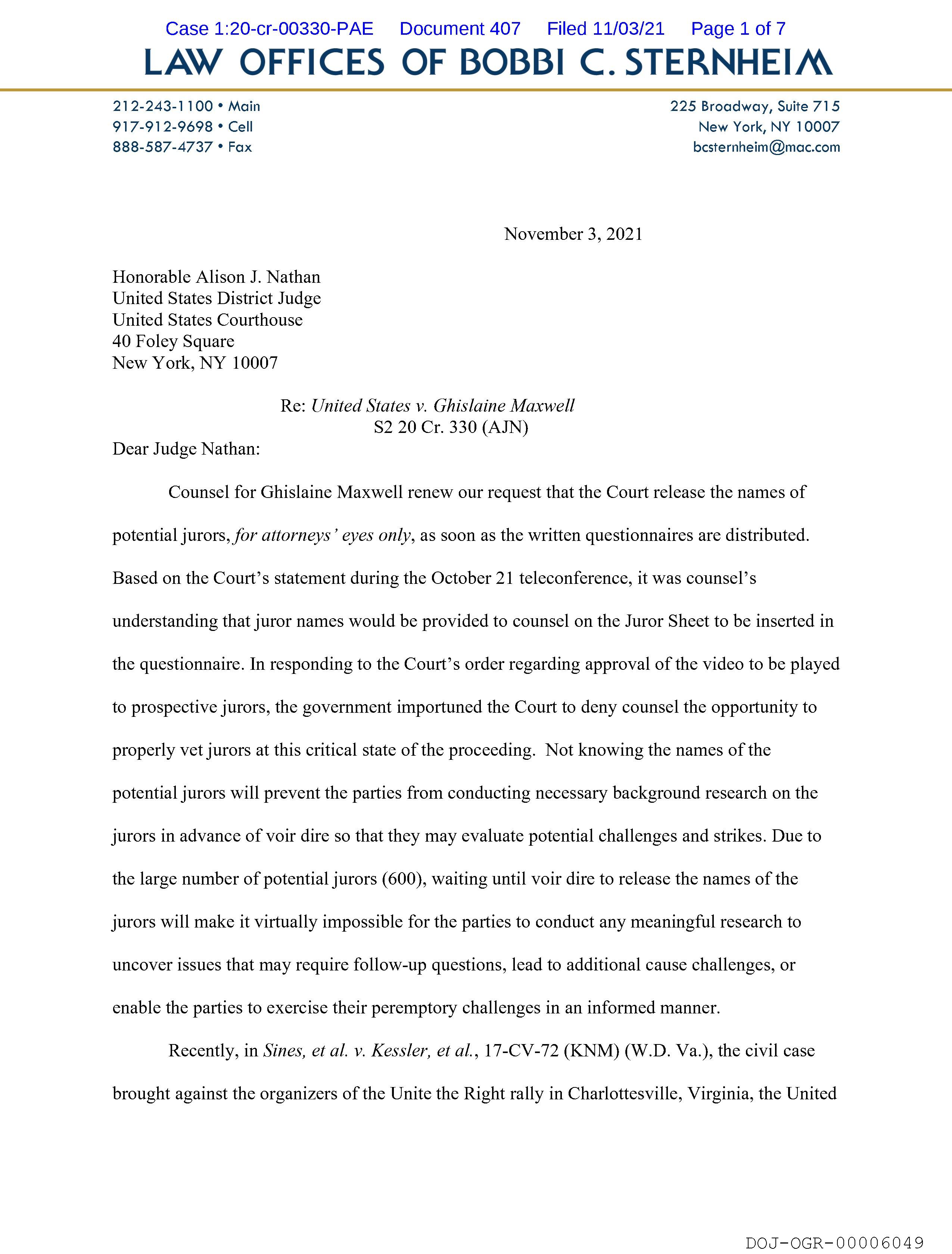 The image displays a scanned document with visible text and some blacked-out sections. The text appears to be from an official letter or report, possibly related to a legal case given the references to "Judge" and "Courtroom." There are also mentions of names that have been redacted. However, without more context, it's not possible to determine the exact nature of the document. The text is printed in black ink on a white background, indicating a standard typewritten format.