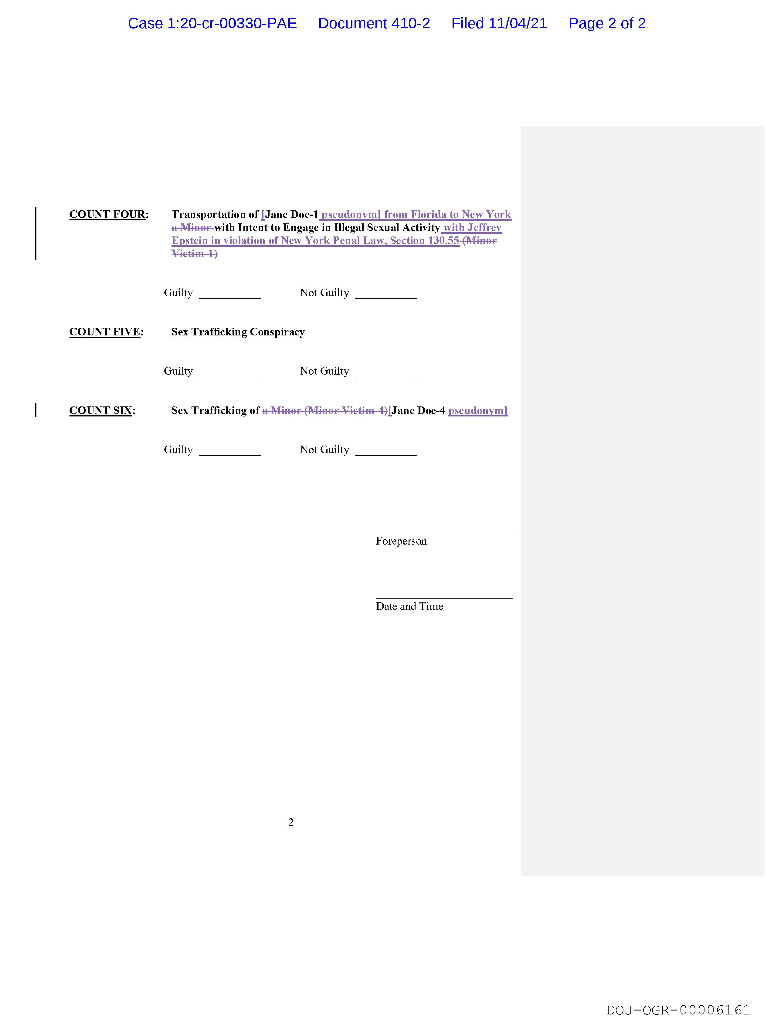 The image displays a scanned document with visible text and some blacked-out sections. The text appears to be from an official letter or report, possibly related to a legal case given the references to "Judge" and "Courtroom." There are also mentions of names that have been redacted. However, without more context, it's not possible to determine the exact nature of the document. The text is printed in black ink on a white background, indicating a standard typewritten format.