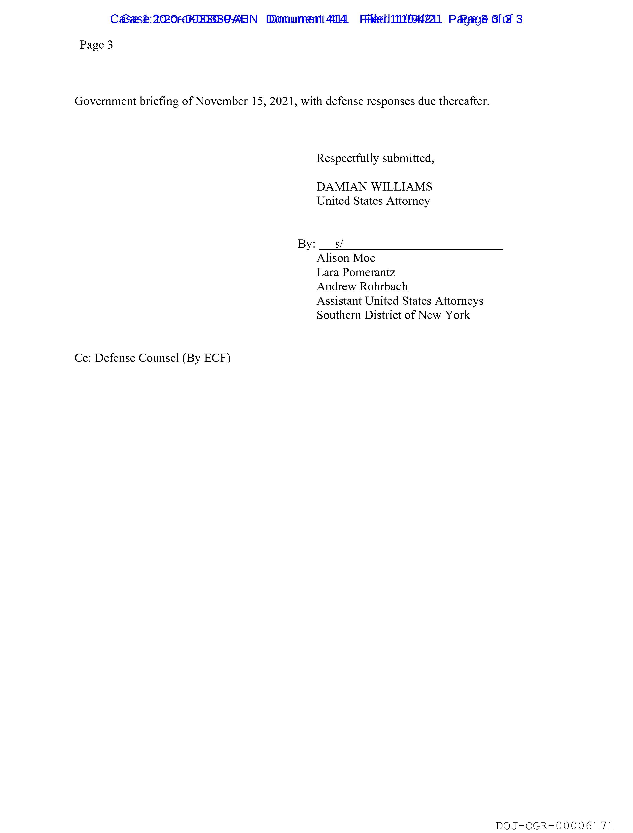 The image displays a scanned document with visible text and some blacked-out sections. The text appears to be from an official letter or report, possibly related to a legal case given the references to "Judge" and "Courtroom." There are also mentions of names that have been redacted. However, without more context, it's not possible to determine the exact nature of the document. The text is printed in black ink on a white background, indicating a standard typewritten format.