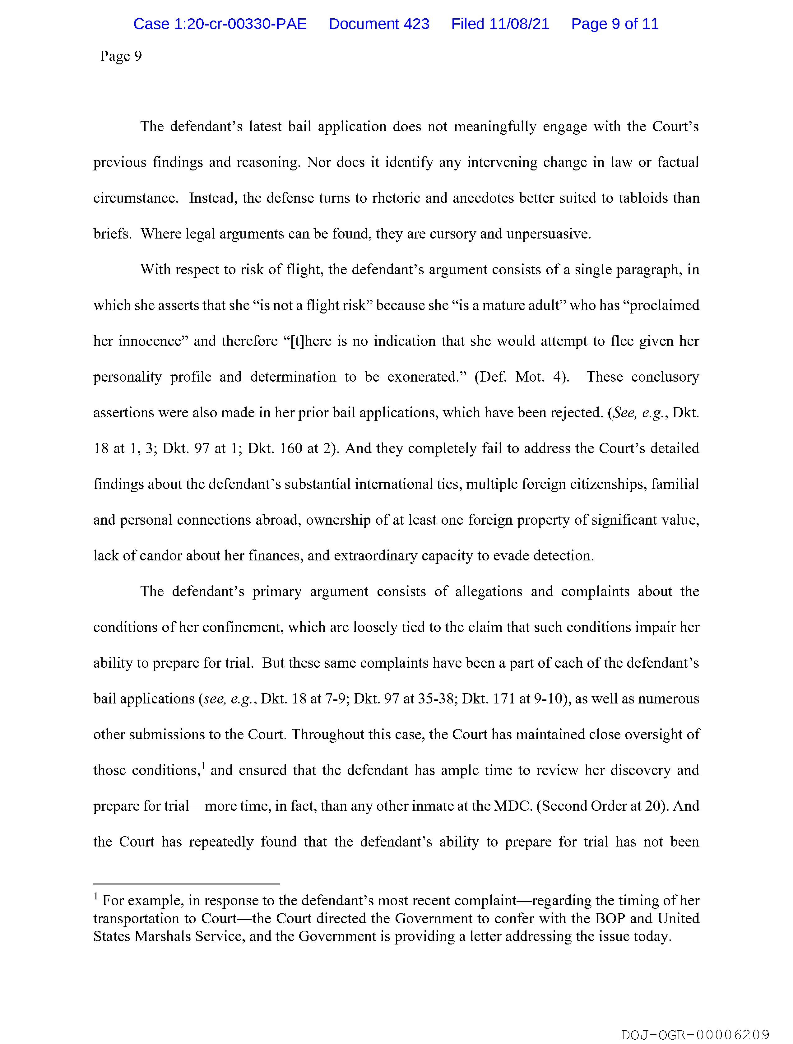 The image displays a scanned document with visible text and some blacked-out sections. The text appears to be from an official letter or report, possibly related to a legal case given the references to "Judge" and "Courtroom." There are also mentions of names that have been redacted. However, without more context, it's not possible to determine the exact nature of the document. The text is printed in black ink on a white background, indicating a standard typewritten format.