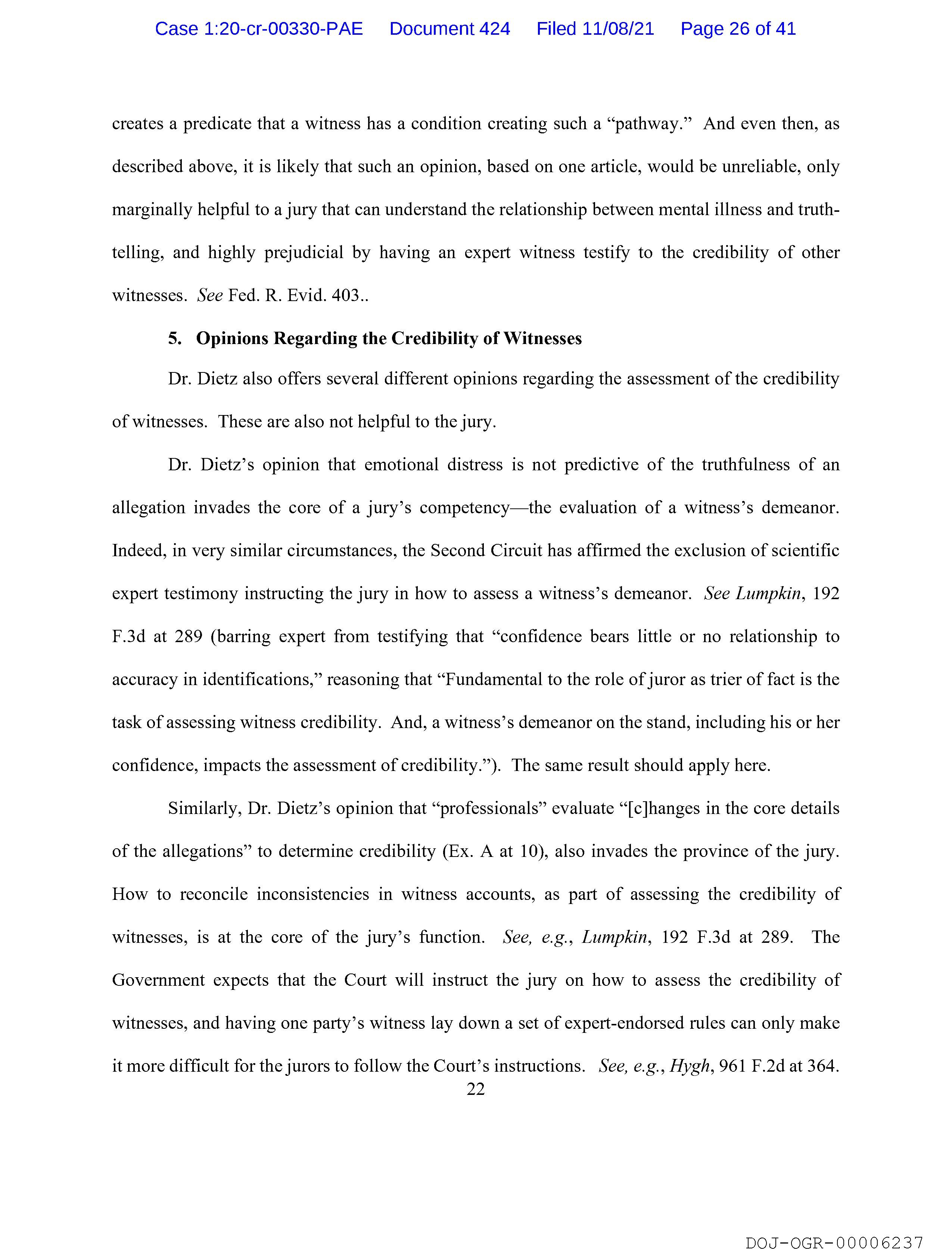 The image appears to be a digital screenshot of a document with text that discusses various points regarding the credibility of witness statements.