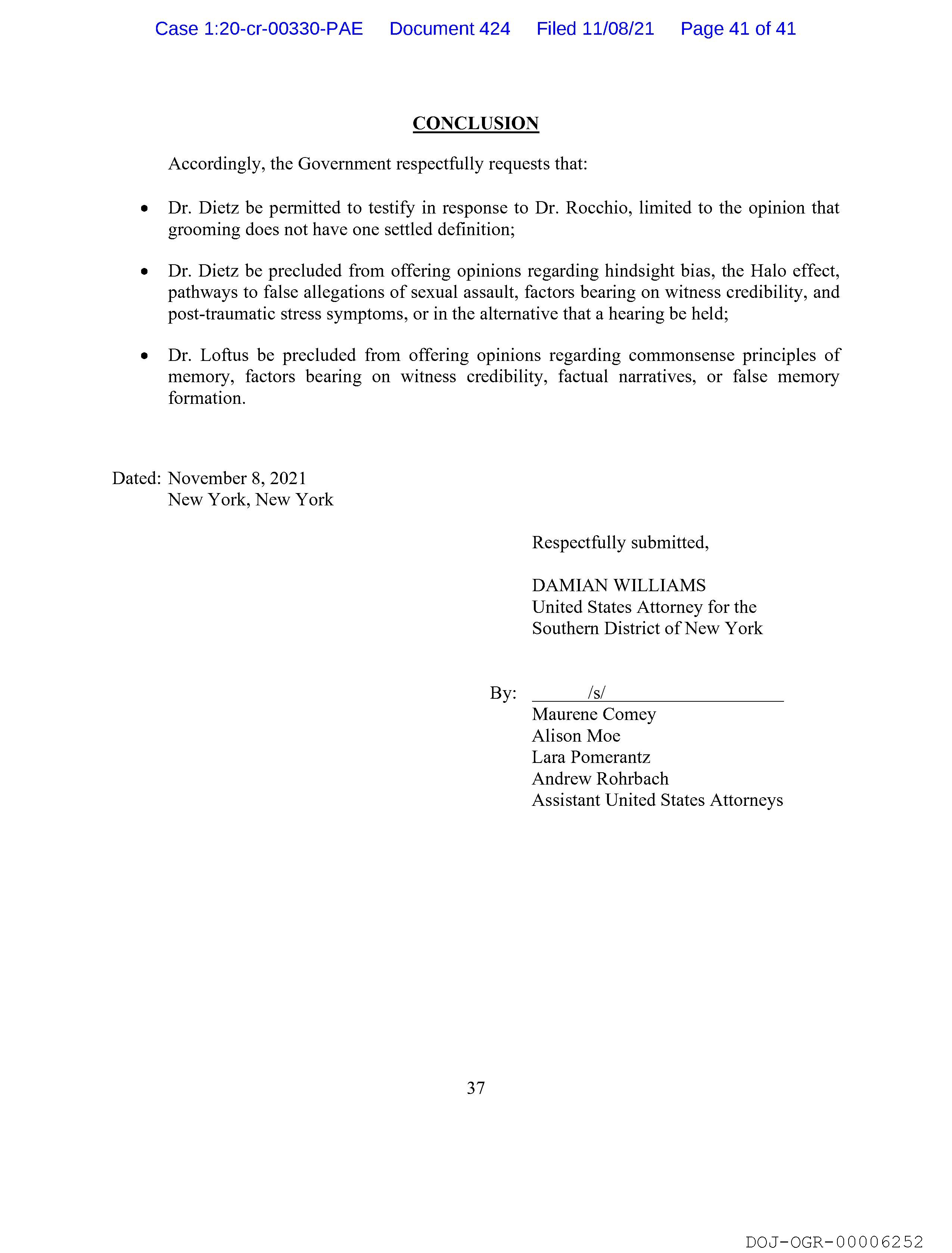 The image displays a scanned document with visible text and some blacked-out sections. The text appears to be from an official letter or report, possibly related to a legal case given the references to "Judge" and "Courtroom." There are also mentions of names that have been redacted. However, without more context, it's not possible to determine the exact nature of the document. The text is printed in black ink on a white background, indicating a standard typewritten format.