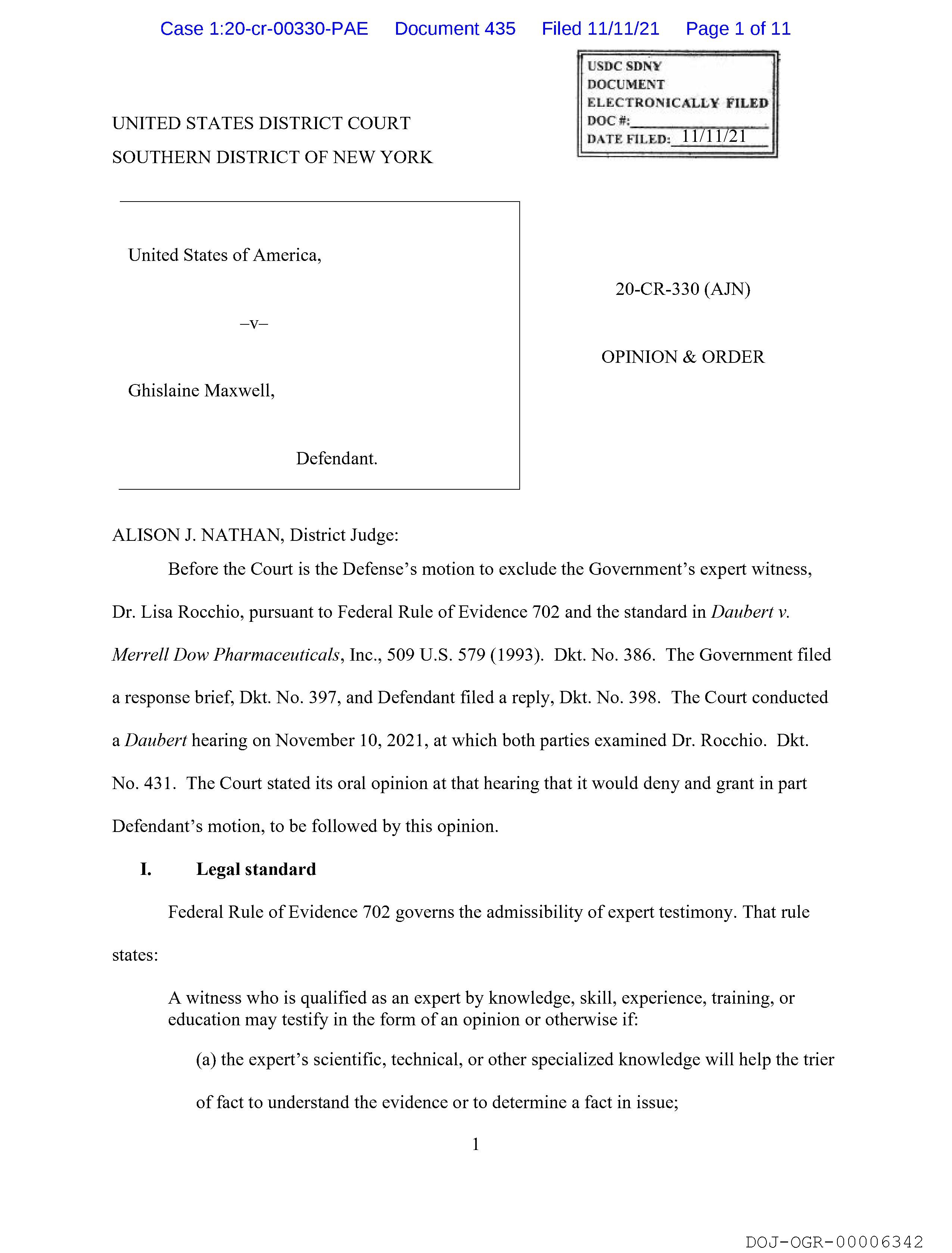 The image is a scanned document with the title "GOVERNMENT OF THE UNITED STATES COURT ORDER" at the top.
