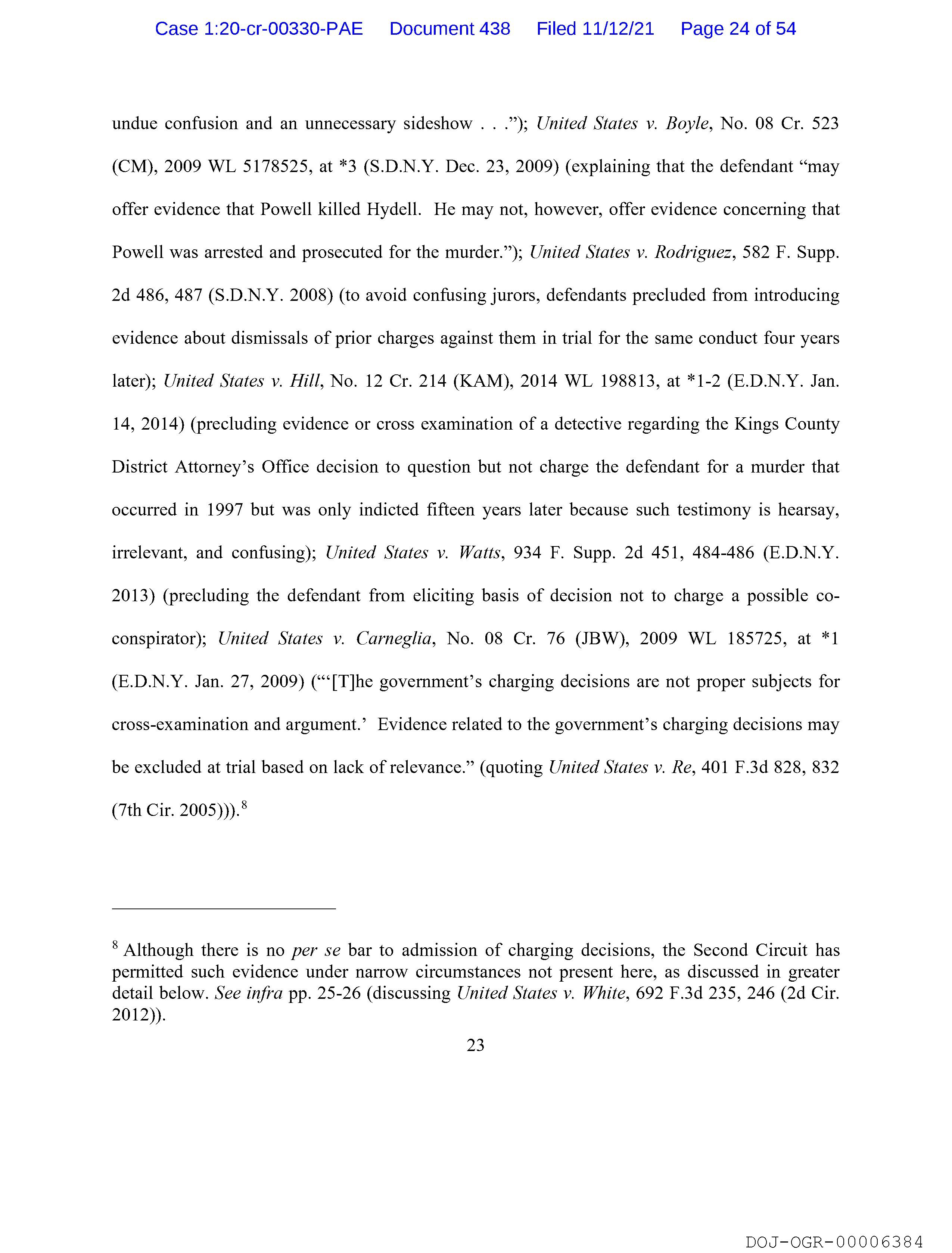 The image displays a scanned document with visible text and some blacked-out sections. The text appears to be from an official letter or report, possibly related to a legal case given the references to "Judge" and "Courtroom." There are also mentions of names that have been redacted. However, without more context, it's not possible to determine the exact nature of the document. The text is printed in black ink on a white background, indicating a standard typewritten format.