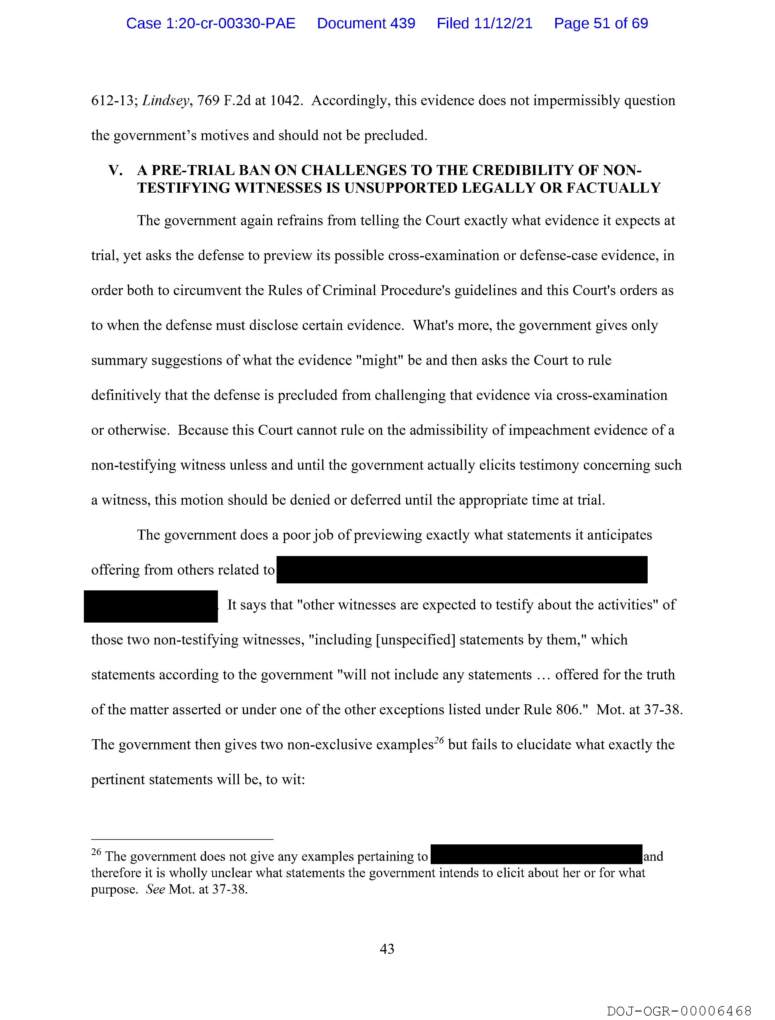 The image displays a scanned document with visible text and some blacked-out sections. The text appears to be from an official letter or report, possibly related to a legal case given the references to "Judge" and "Courtroom." There are also mentions of names that have been redacted. However, without more context, it's not possible to determine the exact nature of the document. The text is printed in black ink on a white background, indicating a standard typewritten format.