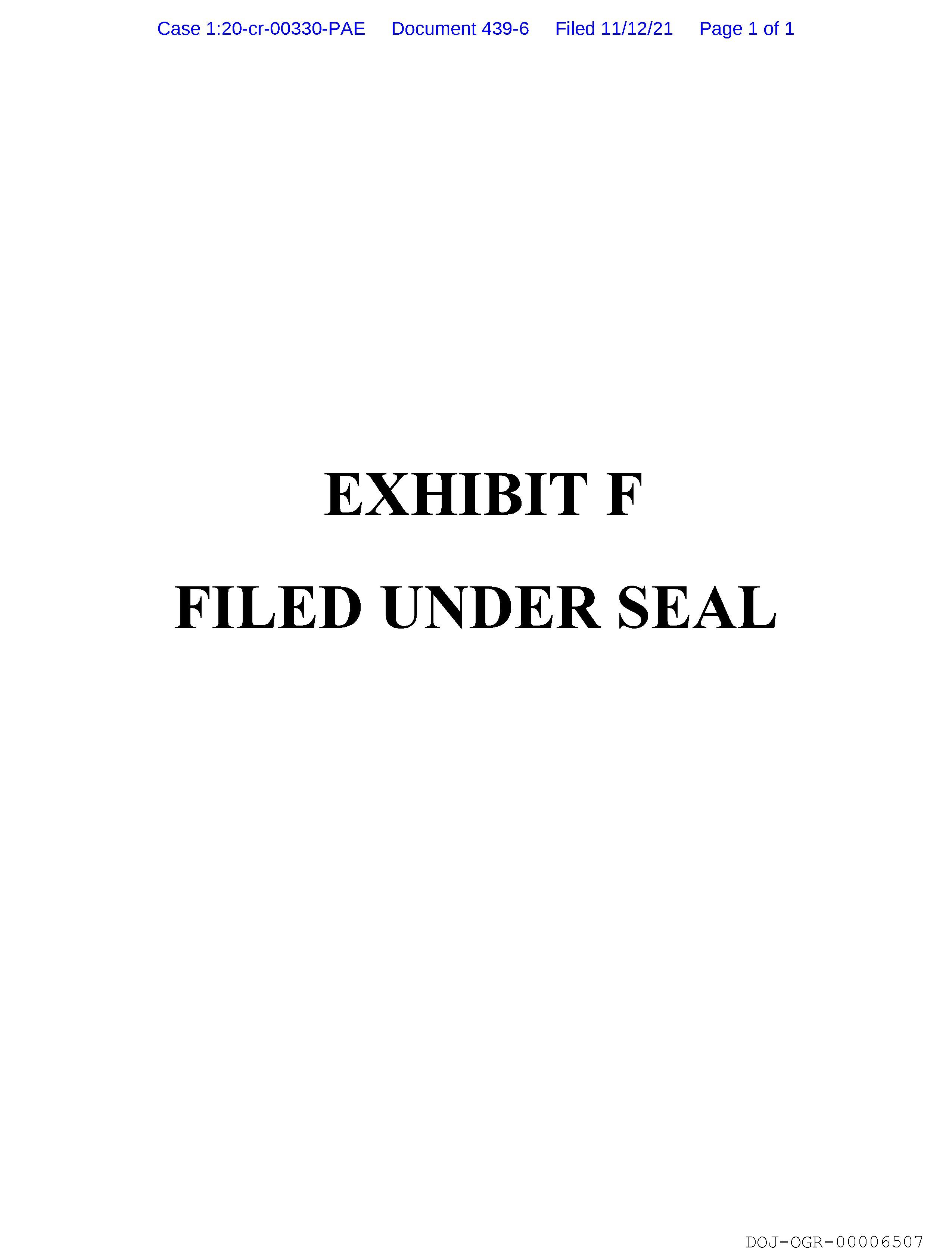The image displays a document with a cover page titled "EXHIBIT E" followed by the subtitle "FILED UNDER SEAL.