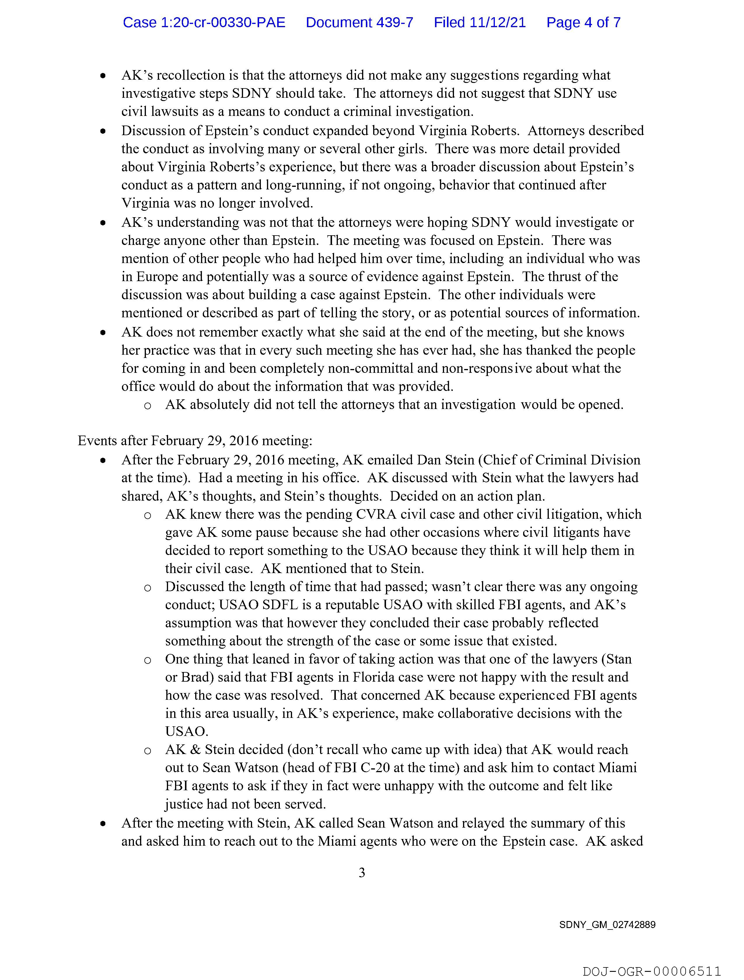 The image displays a scanned document with visible text and some blacked-out sections. The text appears to be from an official letter or report, possibly related to a legal case given the references to "Judge" and "Courtroom." There are also mentions of names that have been redacted. However, without more context, it's not possible to determine the exact nature of the document. The text is printed in black ink on a white background, indicating a standard typewritten format.