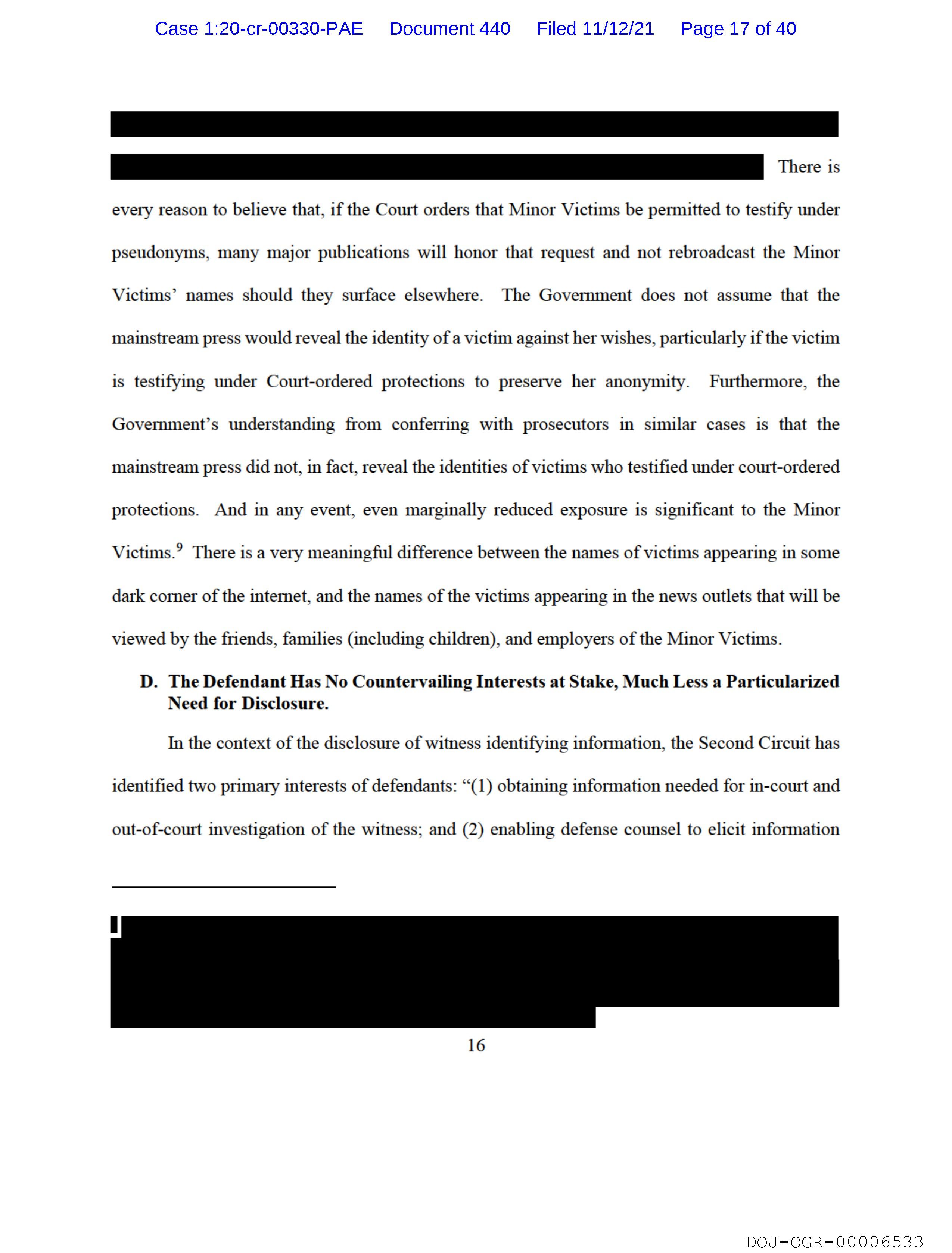 The image is a scanned document with a blurred background. The focus is on the text, which appears to be from an academic paper or legal report discussing issues of anonymity and privacy in certain contexts, such as court proceedings or news reporting. Specific parts of the text are redacted, likely due to confidentiality concerns or to comply with regulations regarding personal information. The document's contents are not fully visible, but it is clear that it pertains to a serious subject matter involving legal considerations and ethical dilemmas.