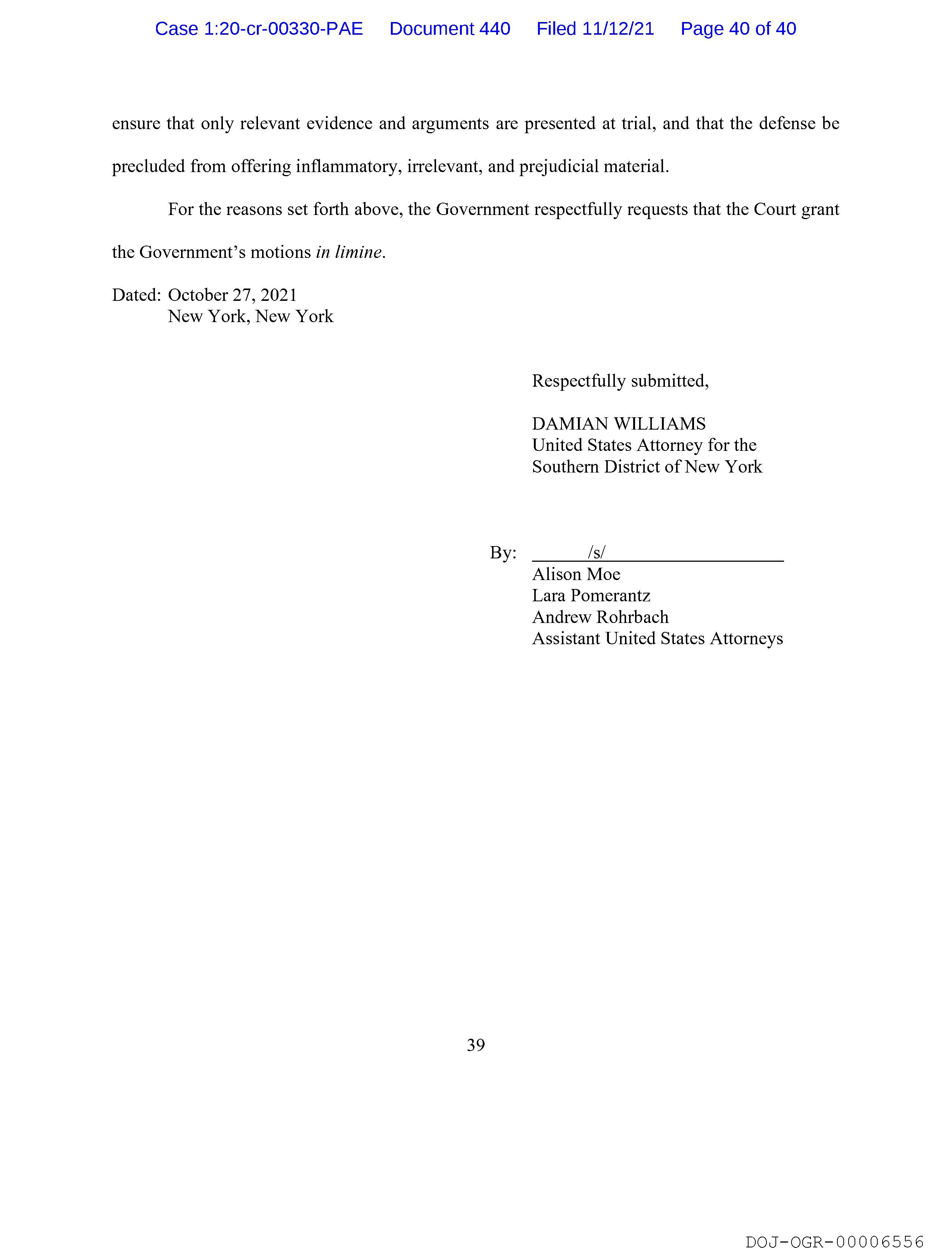 The image displays a scanned document with visible text and some blacked-out sections. The text appears to be from an official letter or report, possibly related to a legal case given the references to "Judge" and "Courtroom." There are also mentions of names that have been redacted. However, without more context, it's not possible to determine the exact nature of the document. The text is printed in black ink on a white background, indicating a standard typewritten format.