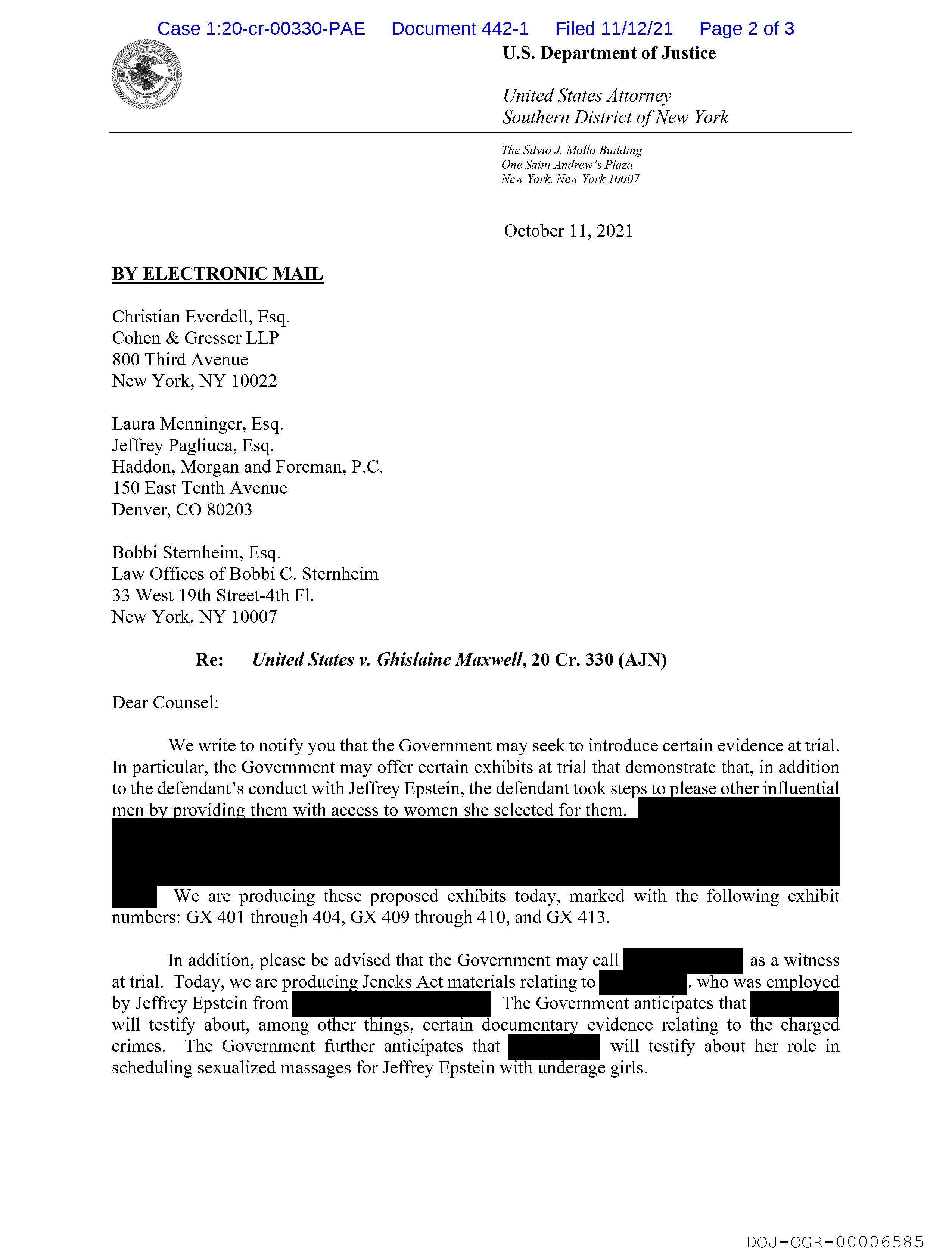 The image displays a scanned document with visible text and some blacked-out sections. The text appears to be from an official letter or report, possibly related to a legal case given the references to "Judge" and "Courtroom." There are also mentions of names that have been redacted. However, without more context, it's not possible to determine the exact nature of the document. The text is printed in black ink on a white background, indicating a standard typewritten format.