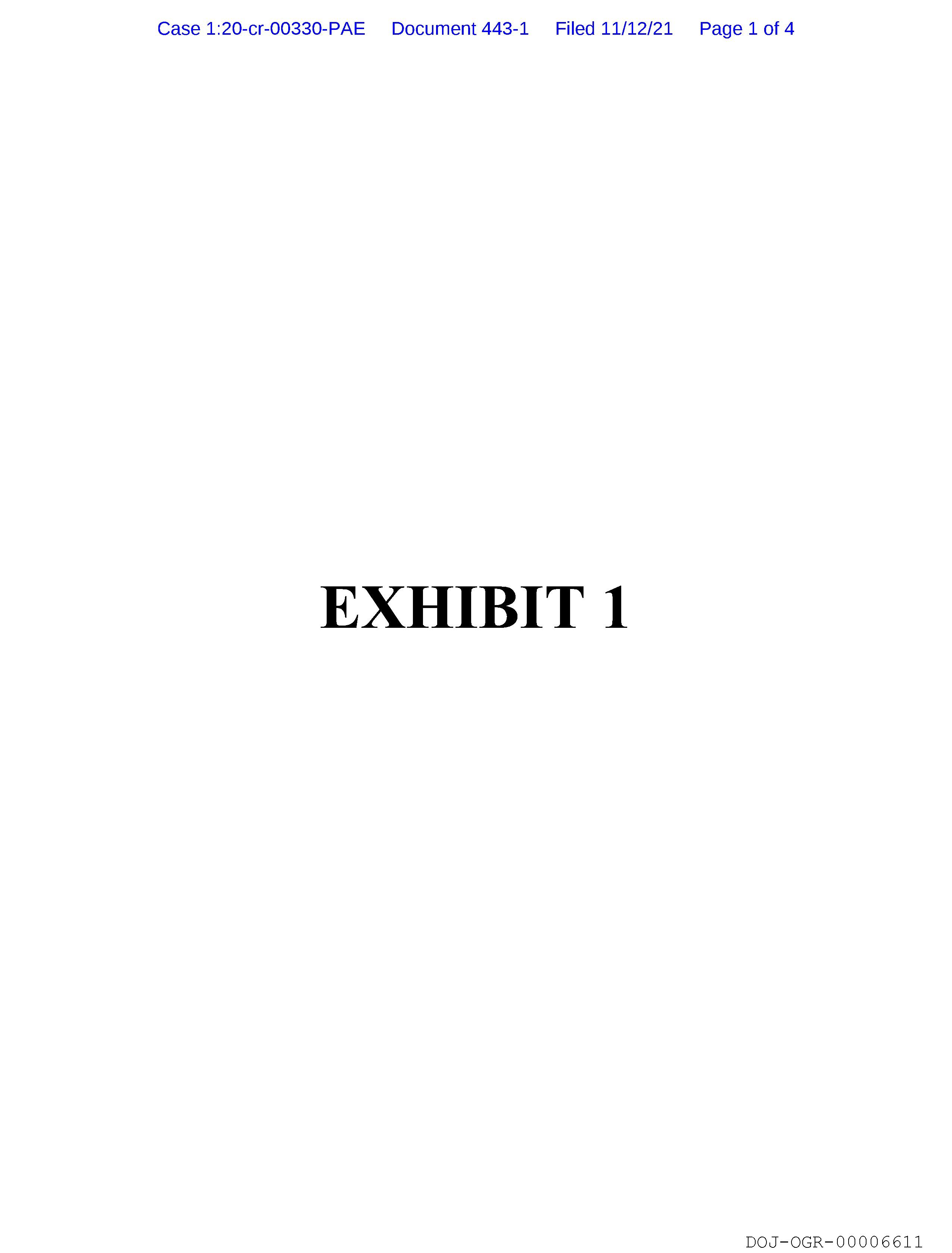 The image appears to be a low-resolution photograph of a document with the words "EXHIBIT 1" prominently displayed at the top center.