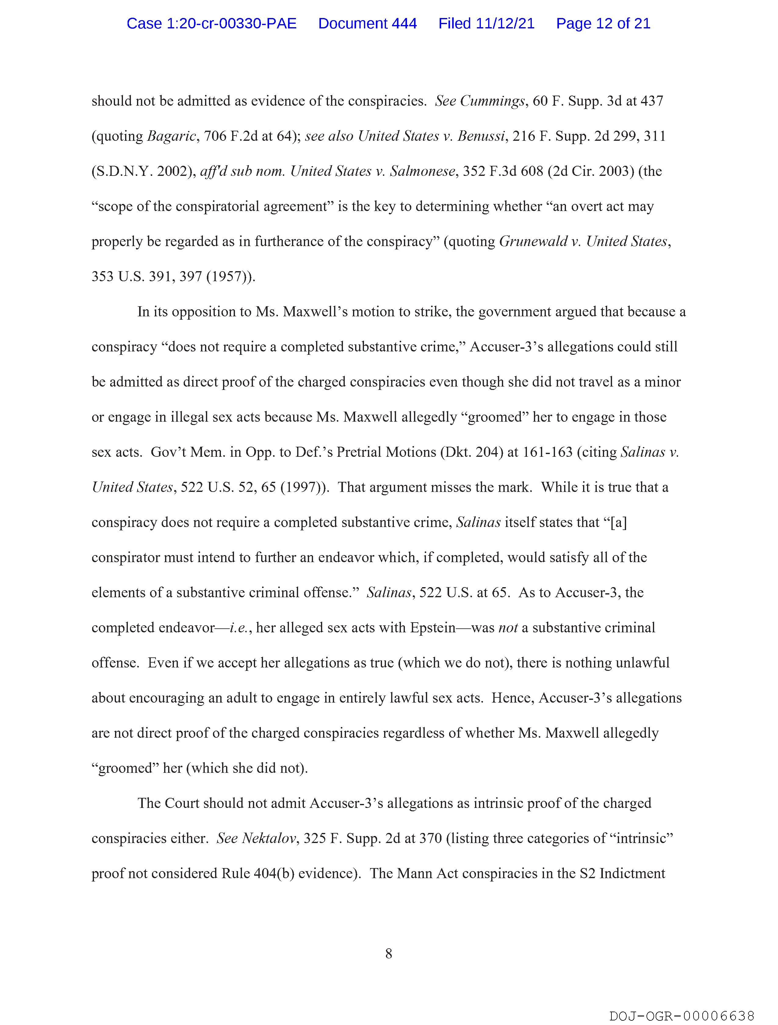 The image is a digital photograph of printed text on white paper. The document contains multiple paragraphs with black ink, and it appears to be structured into sections, possibly as part of a formal report or legal document. There are visible page numbers at the top right corner, indicating that this page is part of a larger document, but the exact content or subject matter of the text is not discernible from the image provided. The paper has slight creases and shadows, suggesting it may have been handled or stored in a less-than-flat manner.