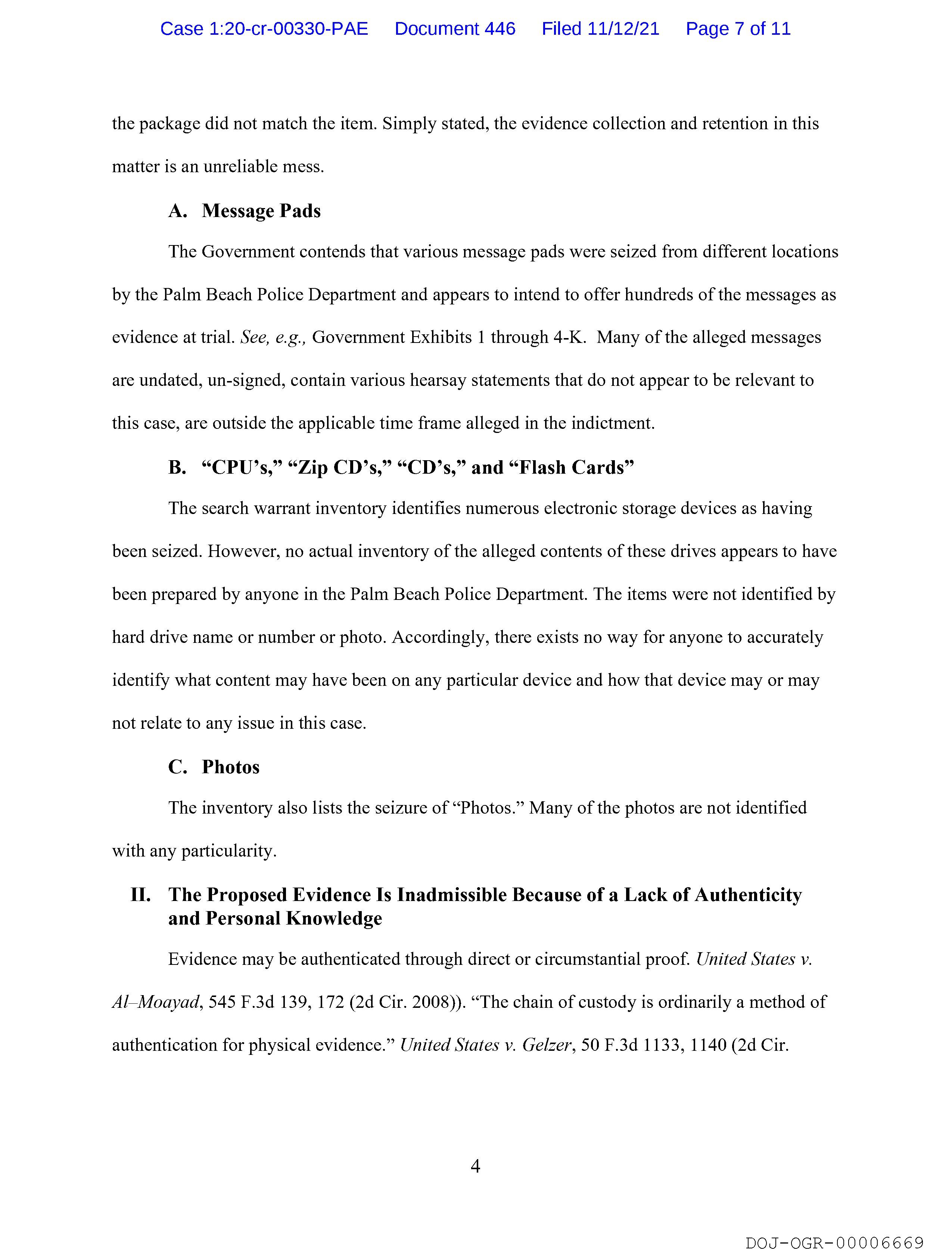 The image displays a scanned document with visible text and some blacked-out sections. The text appears to be from an official letter or report, possibly related to a legal case given the references to "Judge" and "Courtroom." There are also mentions of names that have been redacted. However, without more context, it's not possible to determine the exact nature of the document. The text is printed in black ink on a white background, indicating a standard typewritten format.