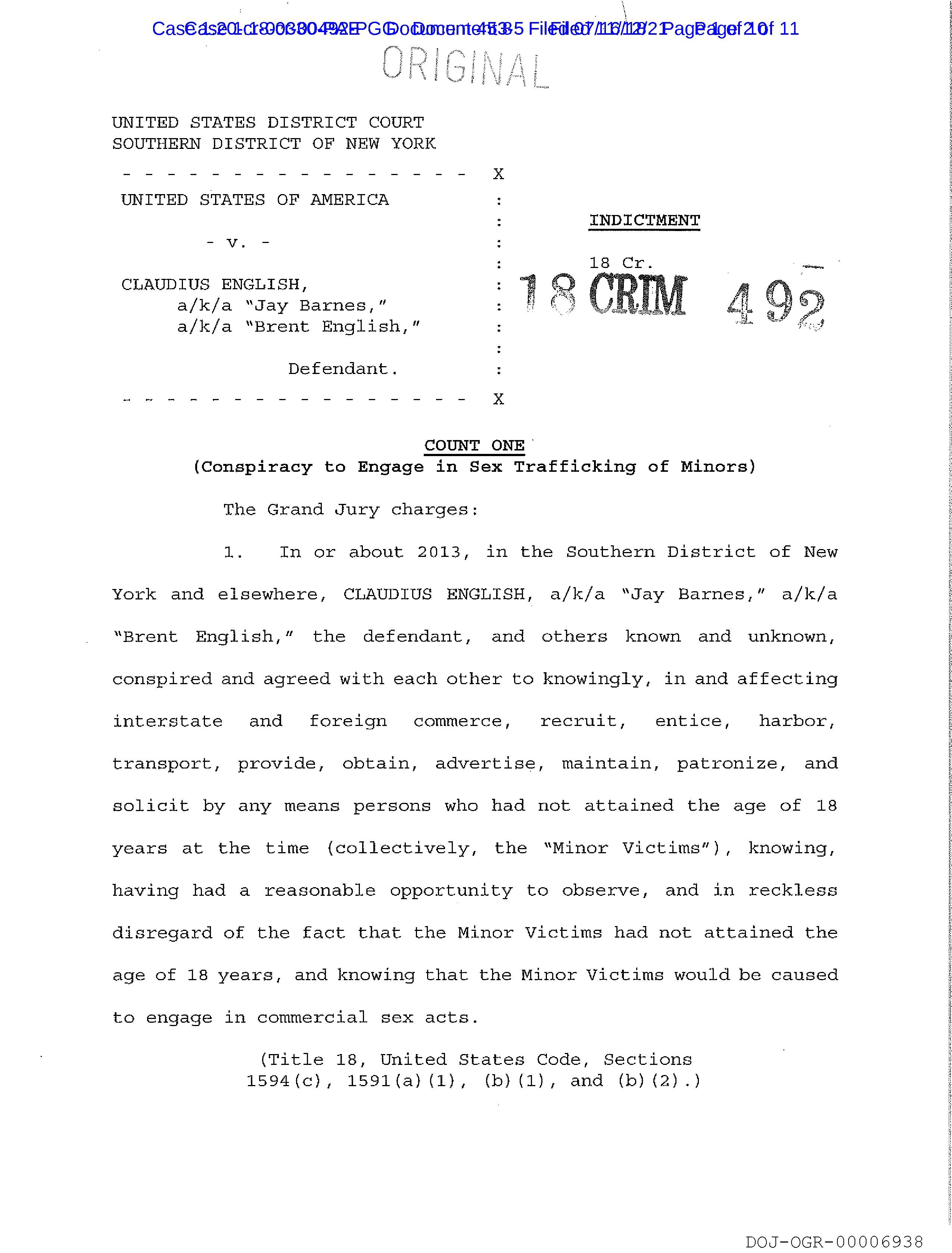 The image shows a document with handwritten annotations and signatures on it. The text at the top of the page appears to be the title "UNITED STATES DISTRICT COURT" followed by additional details that are partially obscured. There is visible text within the document, but it's too small to read clearly from this angle. Handwriting includes underlining and circles around certain words or phrases, suggesting emphasis or attention. The document has a formal look, typical of legal or official correspondence.