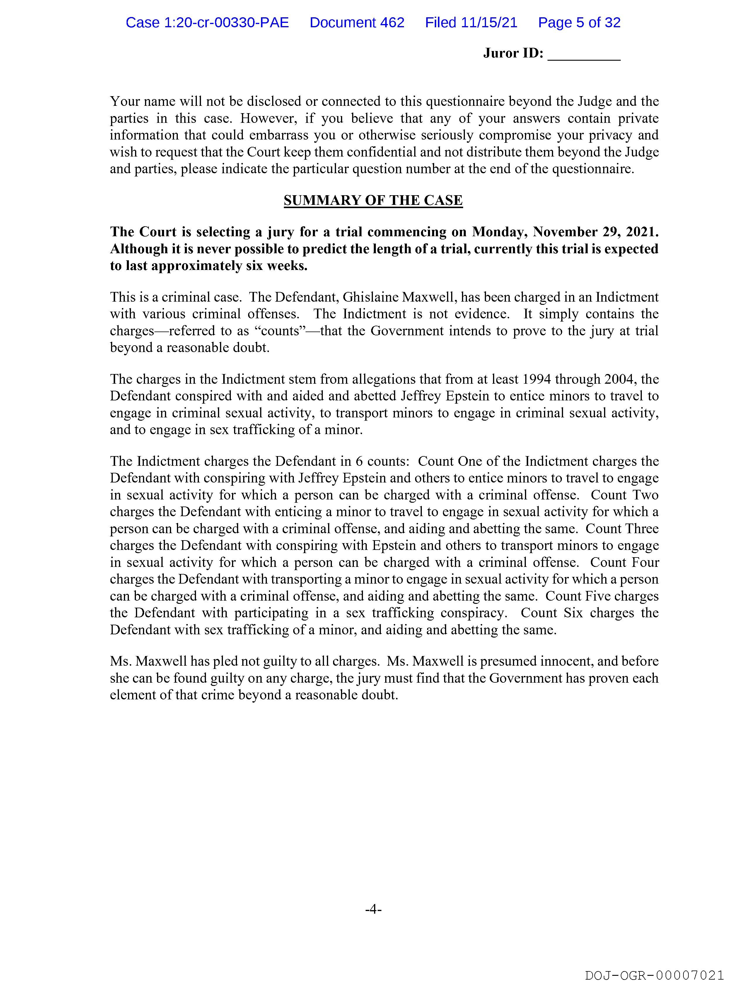 The image displays a scanned document with visible text and some blacked-out sections. The text appears to be from an official letter or report, possibly related to a legal case given the references to "Judge" and "Courtroom." There are also mentions of names that have been redacted. However, without more context, it's not possible to determine the exact nature of the document. The text is printed in black ink on a white background, indicating a standard typewritten format.