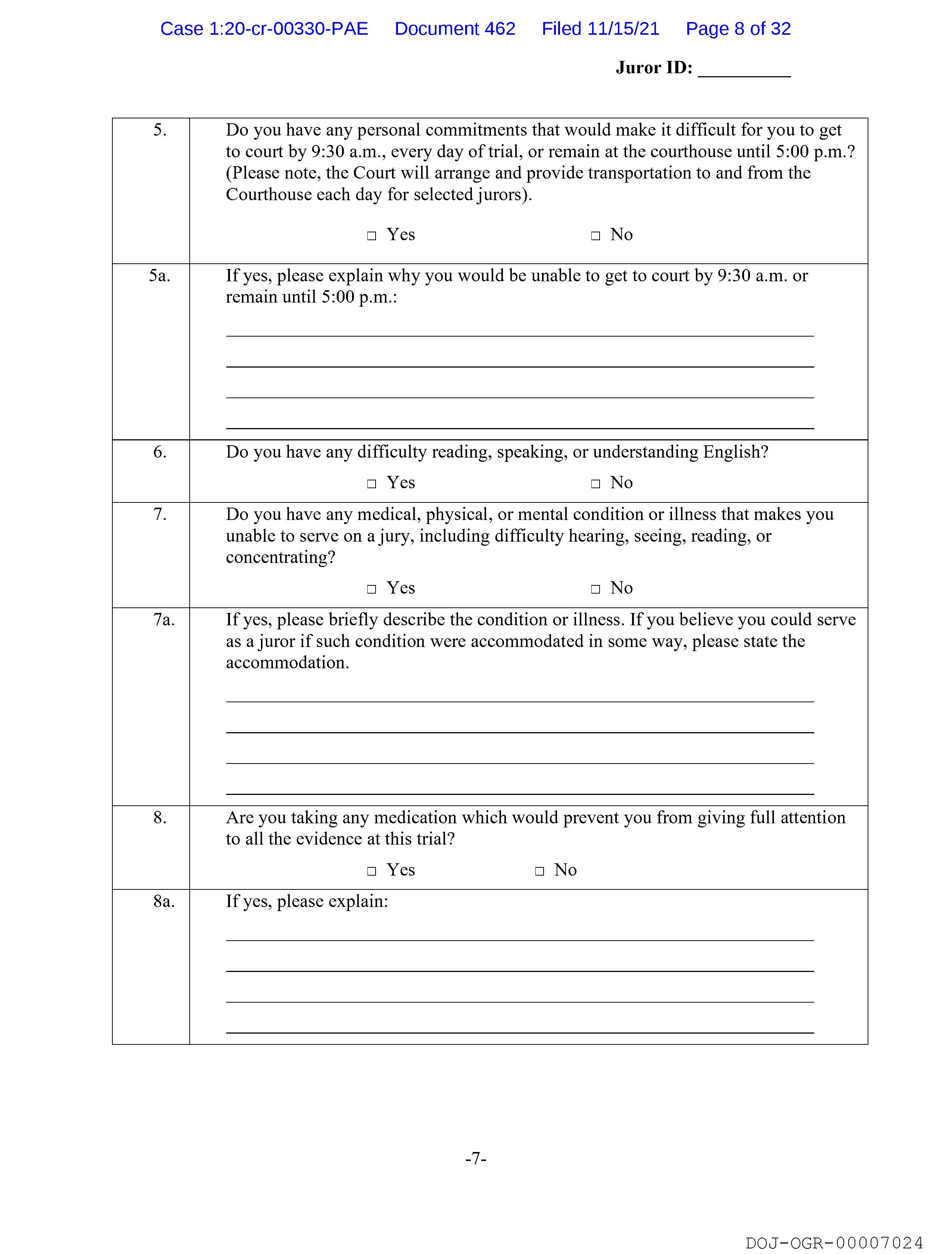 The image shows a piece of paper with handwritten notes and text. It appears to be an official document, possibly related to legal proceedings given the context of questions and responses. The top right corner contains numbers "1-25" followed by a question number "1". Below that, there's a series of questions or prompts with spaces for answers, some of which have been filled out with handwritten text. The document has several lines crossed out with a single line, indicating deletion or correction. The background is white and the handwriting varies in size and style, suggesting multiple authors or different levels of emphasis. It's a black and white image, and there are no images or graphics other than the textual content on the paper.