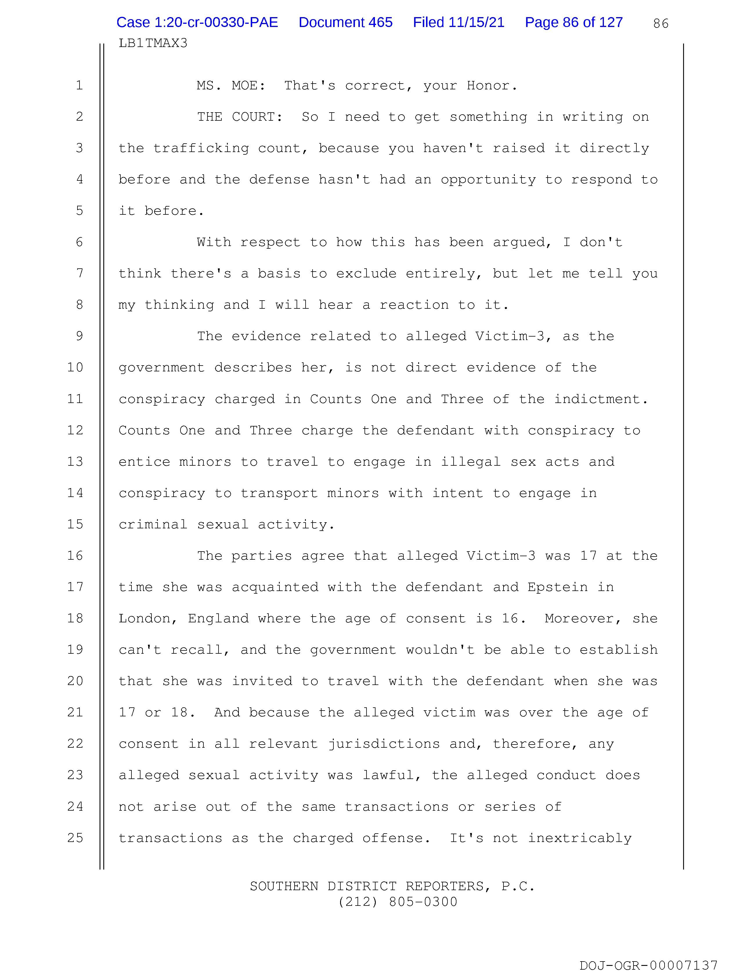 The image displays a scanned document with visible text and some blacked-out sections. The text appears to be from an official letter or report, possibly related to a legal case given the references to "Judge" and "Courtroom." There are also mentions of names that have been redacted. However, without more context, it's not possible to determine the exact nature of the document. The text is printed in black ink on a white background, indicating a standard typewritten format.