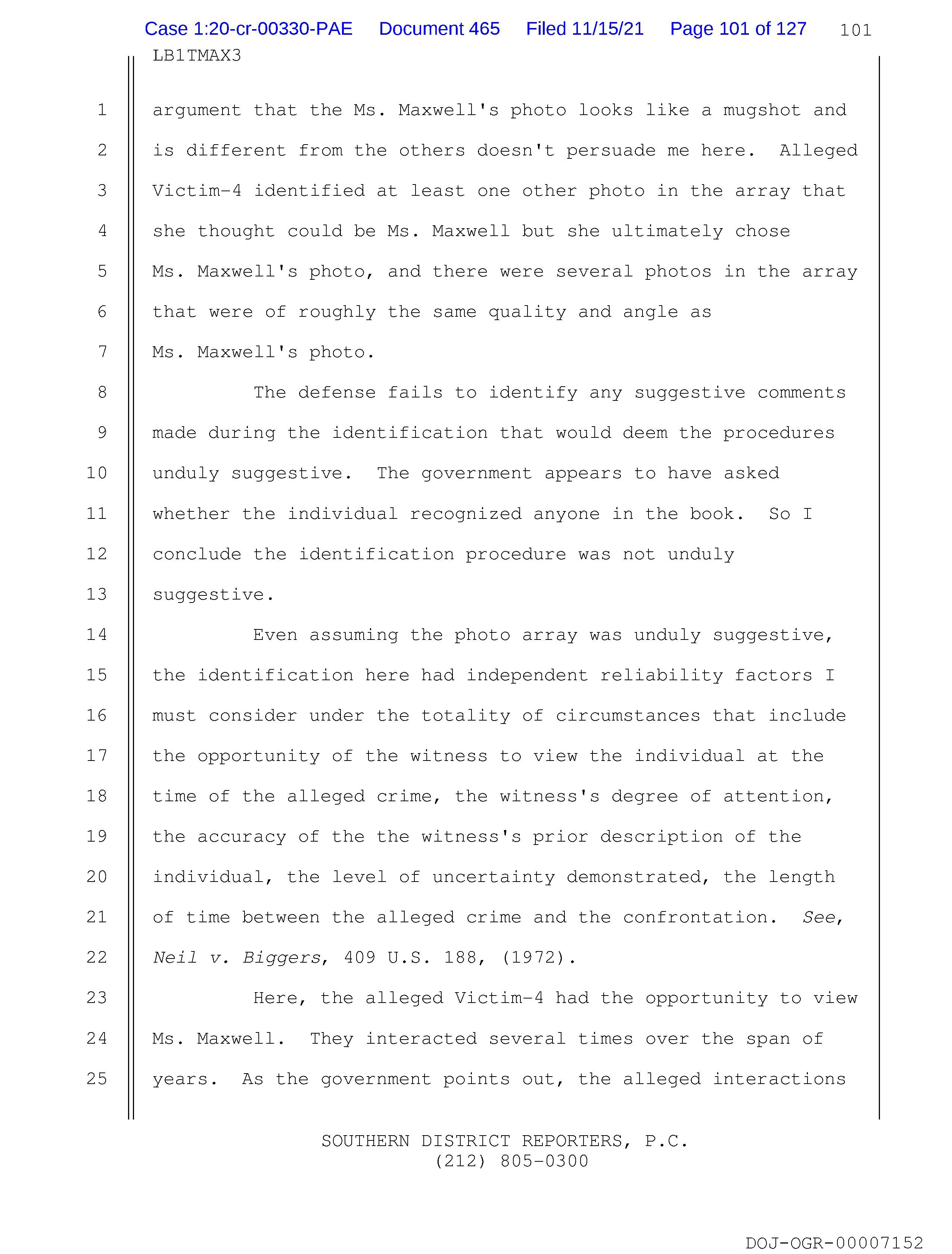 The image displays a scanned document with visible text and some blacked-out sections. The text appears to be from an official letter or report, possibly related to a legal case given the references to "Judge" and "Courtroom." There are also mentions of names that have been redacted. However, without more context, it's not possible to determine the exact nature of the document. The text is printed in black ink on a white background, indicating a standard typewritten format.