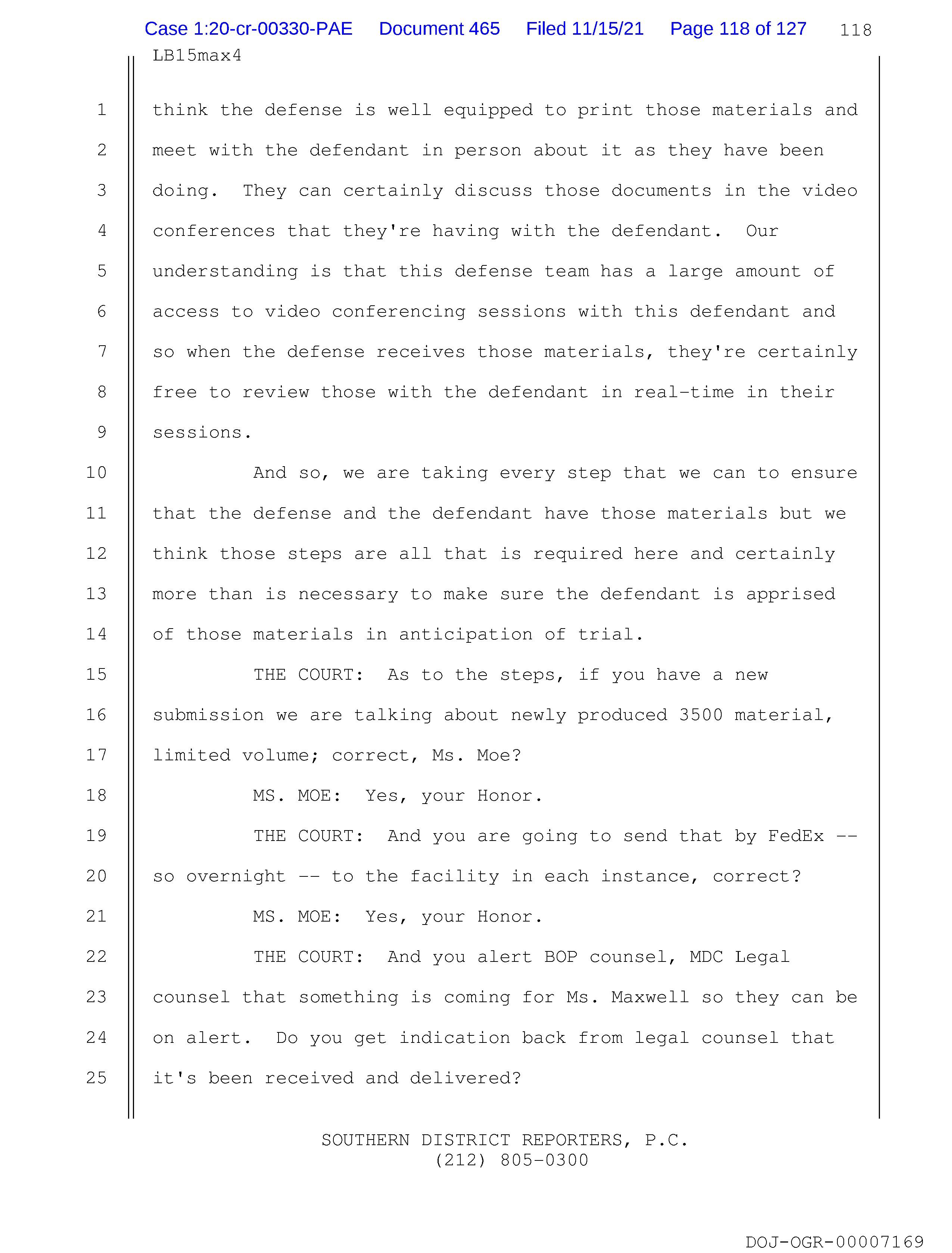 The image displays a scanned document with visible text and some blacked-out sections. The text appears to be from an official letter or report, possibly related to a legal case given the references to "Judge" and "Courtroom." There are also mentions of names that have been redacted. However, without more context, it's not possible to determine the exact nature of the document. The text is printed in black ink on a white background, indicating a standard typewritten format.