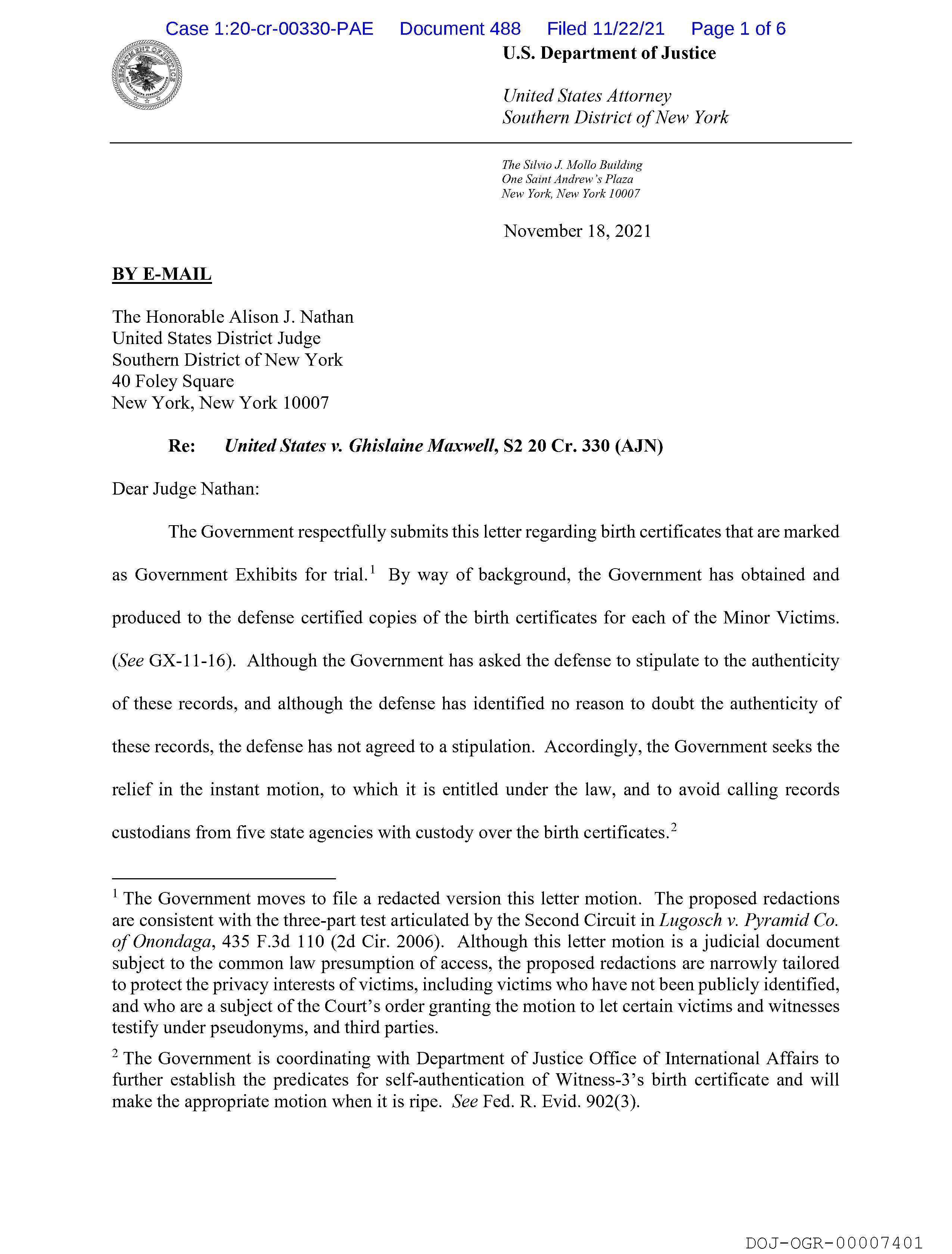 The image displays a scanned document with visible text and some blacked-out sections. The text appears to be from an official letter or report, possibly related to a legal case given the references to "Judge" and "Courtroom." There are also mentions of names that have been redacted. However, without more context, it's not possible to determine the exact nature of the document. The text is printed in black ink on a white background, indicating a standard typewritten format.