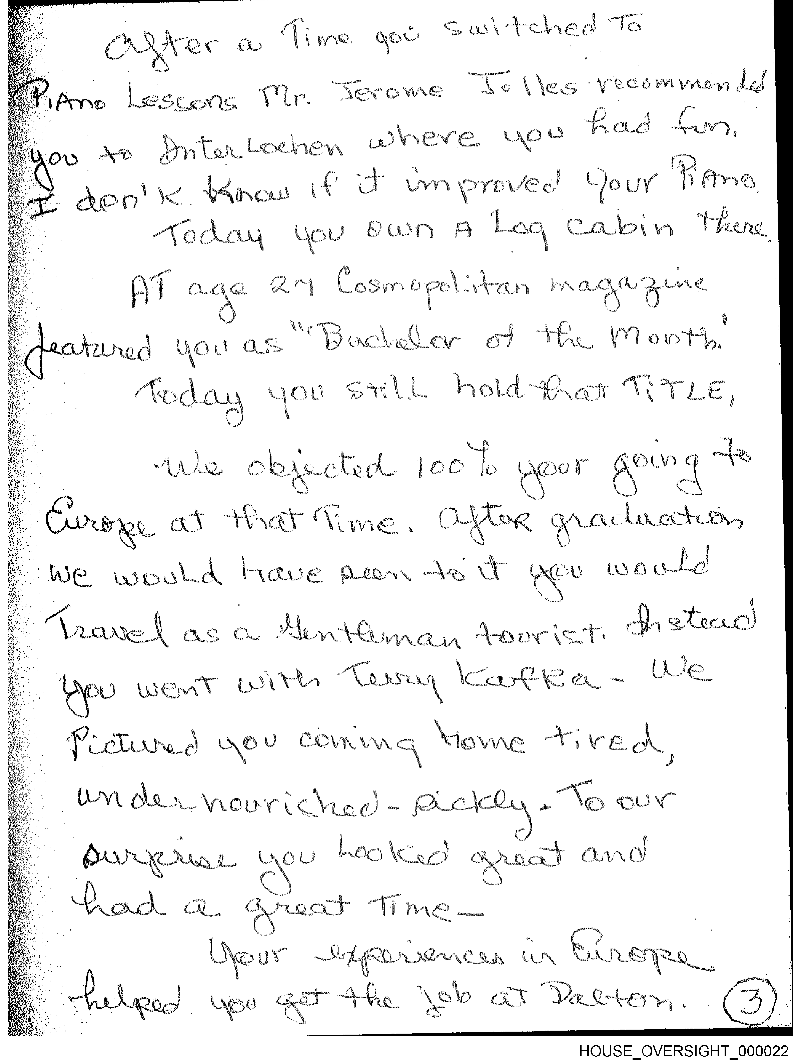 The image appears to be a photograph of a handwritten note placed on what looks like a piece of paper with some sort of printed text at the top, although the content is not clearly legible due to the angle and focus of the photograph. The handwriting is cursive and seems to contain personal information or messages. Since I'm describing images, I can say there are no people or locations explicitly visible in the image provided.