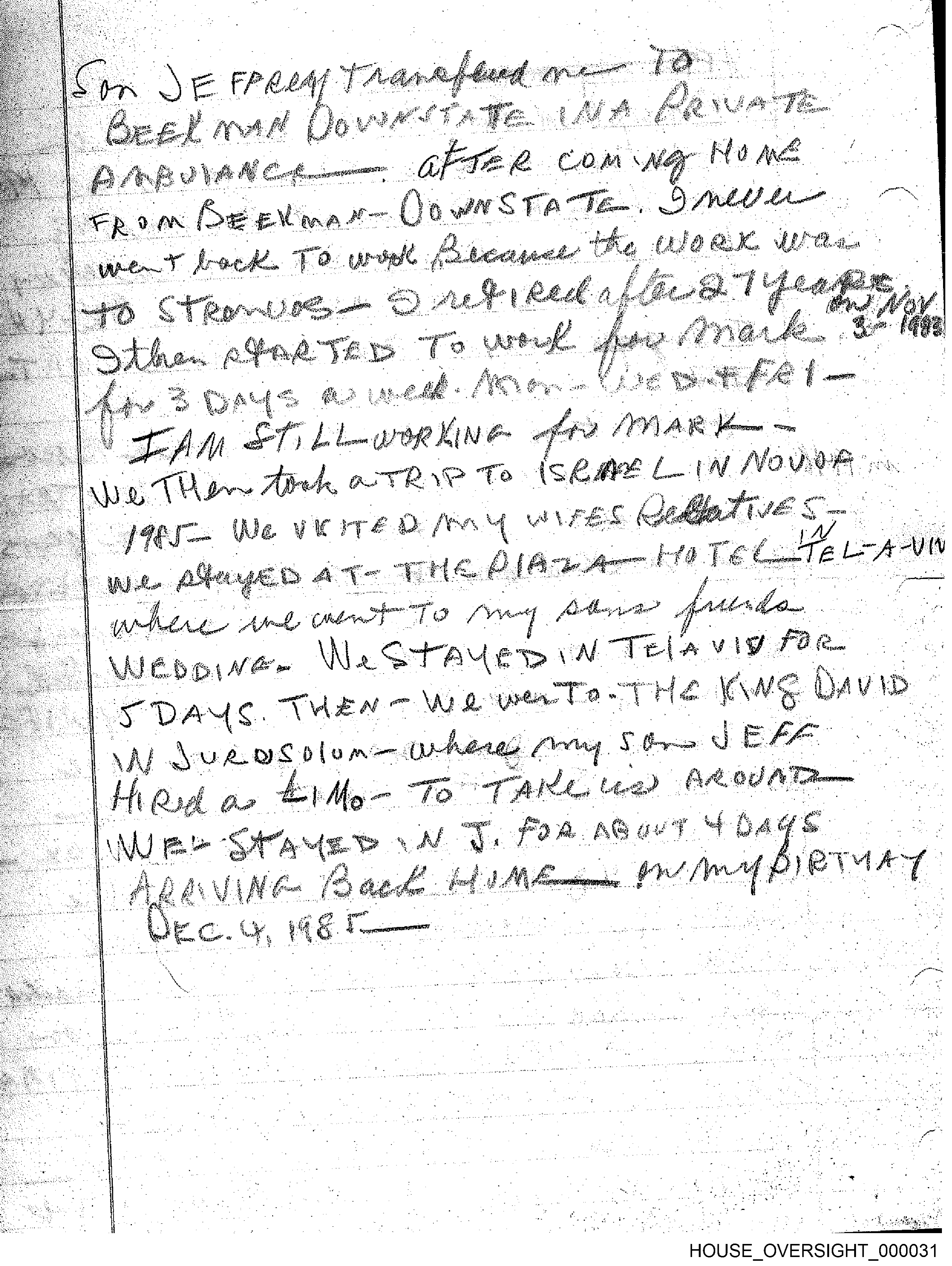 The image shows a handwritten document with multiple paragraphs of text. The writing is quite dense and seems to be filled with various pieces of information that are hard to distinguish due to the quality of the image. There are no visible people or locations, as the focus is solely on the written content. The significant objects in this context are the words themselves, which are intended to convey a message or idea, though they are not clearly legible from this angle and resolution.