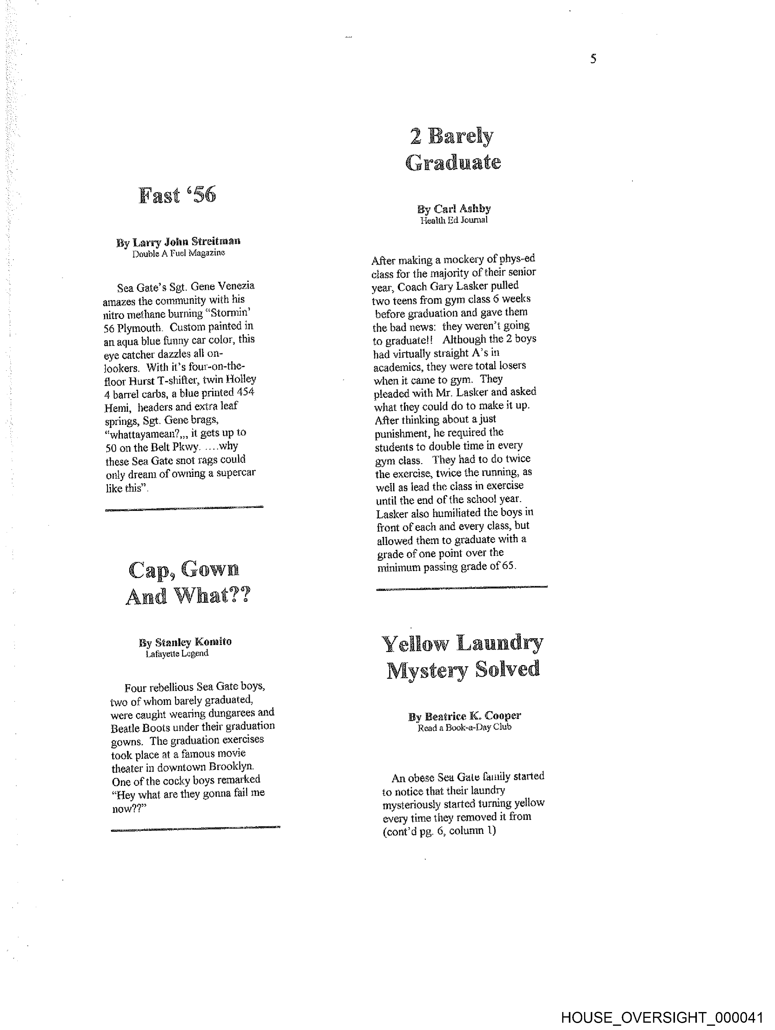 The image shows a scanned document with printed text on it. The text is organized into sections with headings, and the document appears to be informational, possibly related to legal proceedings or government operations. There are names mentioned in the document as well. The quality of the scan is not perfect, with some areas having a slightly faded appearance and small imperfections that might be from the paper's texture or ink bleeding. The background is plain white, which highlights the text but also shows through any transparent areas on the original document.