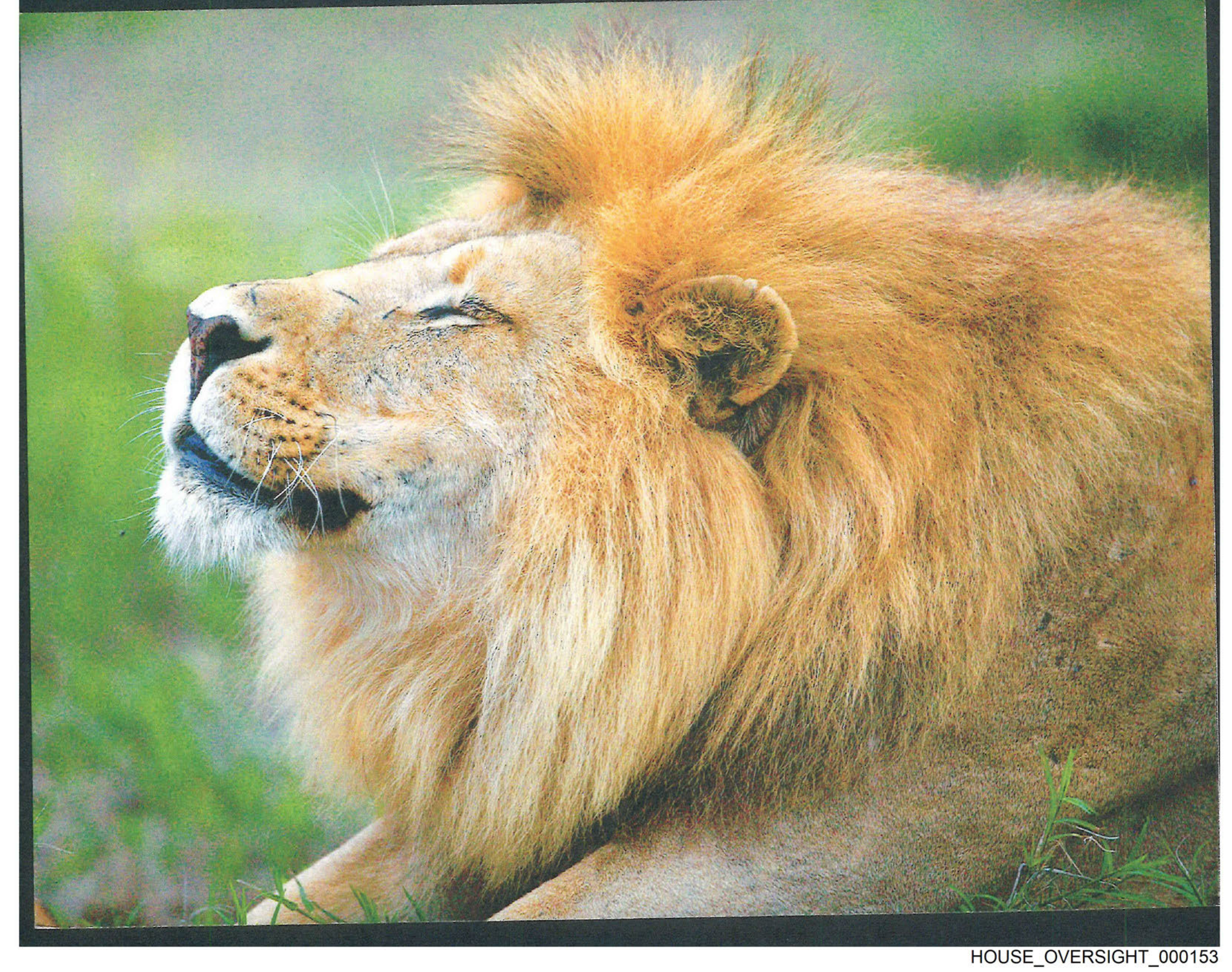 The image shows a close-up of a majestic lion lying on its side with its eyes closed.