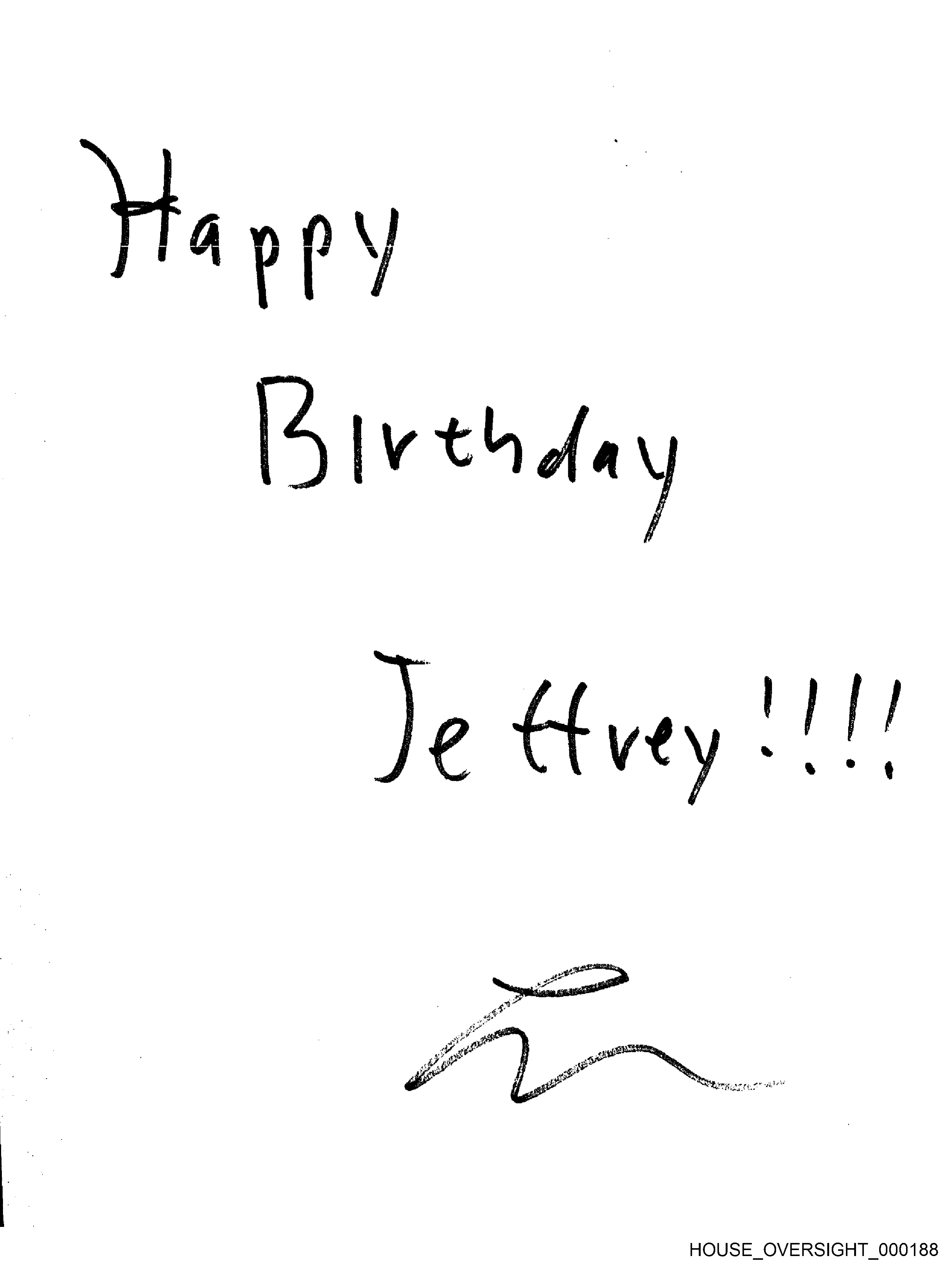 The image shows a handwritten note on a piece of paper with a gray background. The text reads "Happy Birthday Jeffery!!" The writing appears to be in black ink and is written in a casual script style. Below the message, there is a signature followed by what seems to be a drawing of an animal or bird. The overall tone of the image suggests it is a personal greeting card for someone named Jeffrey.