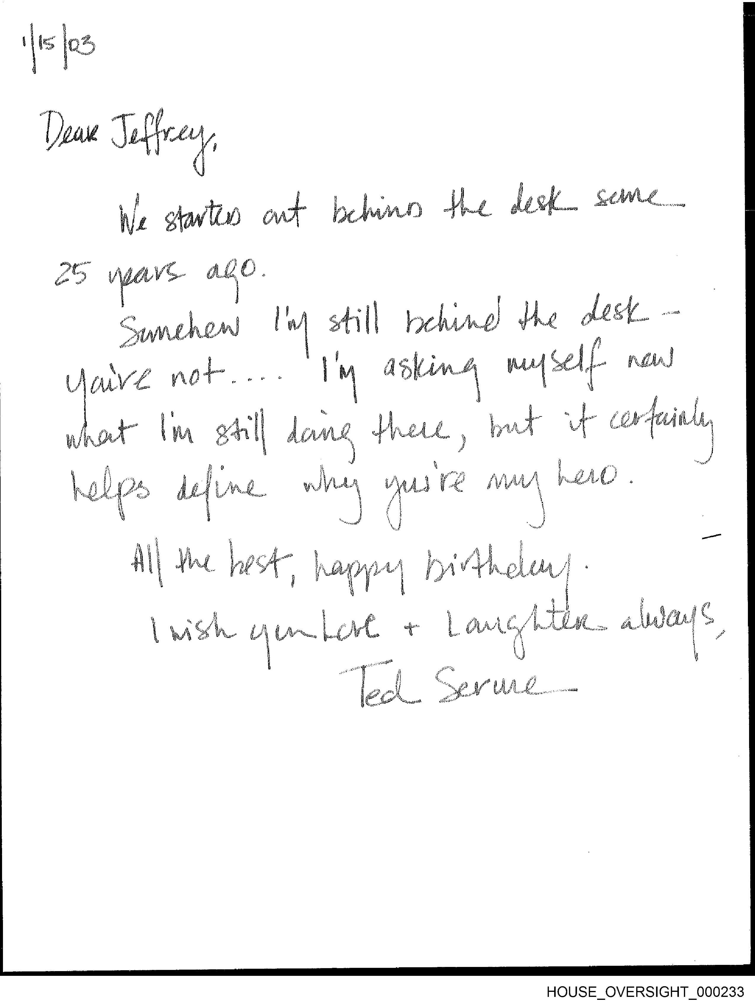 The image is a photograph of a handwritten note on paper. The text is written in black ink and appears to be a personal message addressed to someone named "Stephanie" from an individual named "Diane." It mentions a "birthday," suggesting that the note is for a birthday occasion. The handwriting is slightly messy with a few words crossed out or changed. At the bottom of the image, there is another name written in what appears to be a different hand, possibly indicating someone who has read or processed the note. The background of the paper is white, which contrasts with the black ink of the text, making it easily readable.