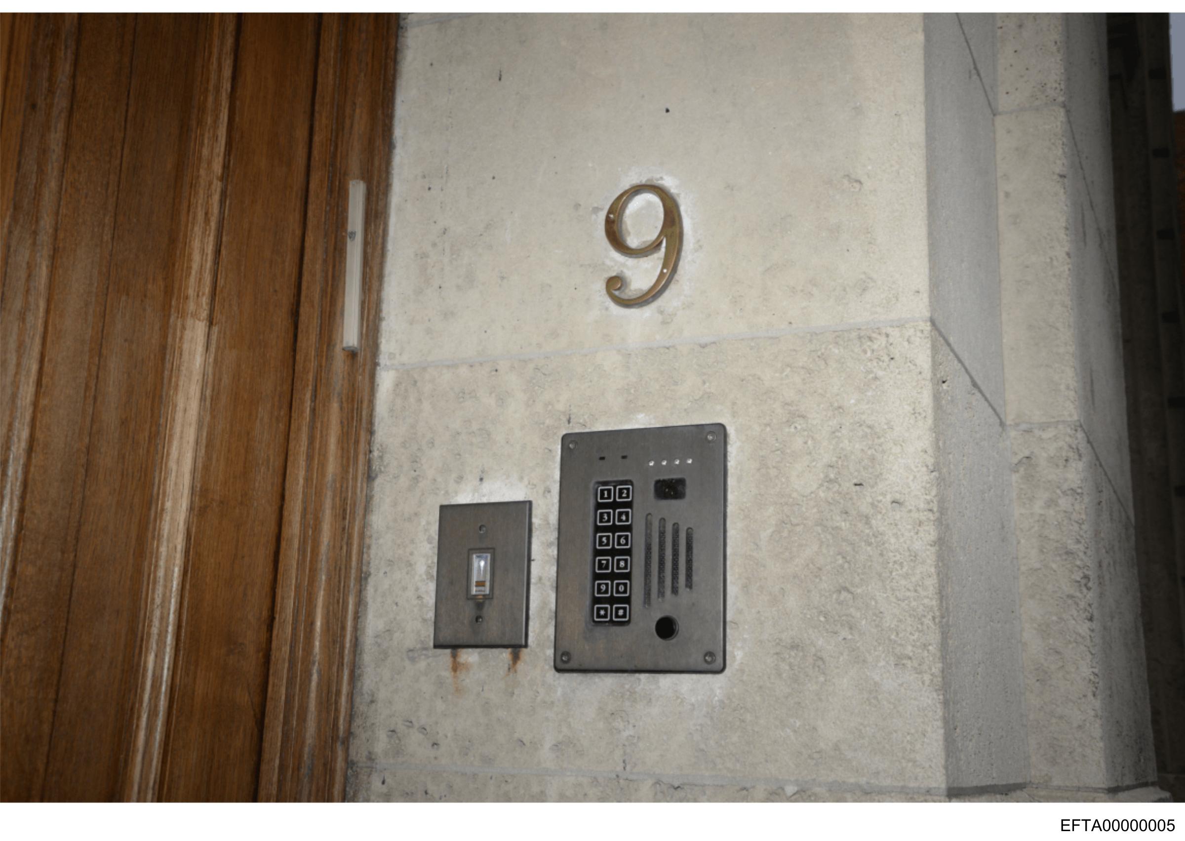 The image shows a close-up view of an elevator panel with the number "9" prominently displayed above it.