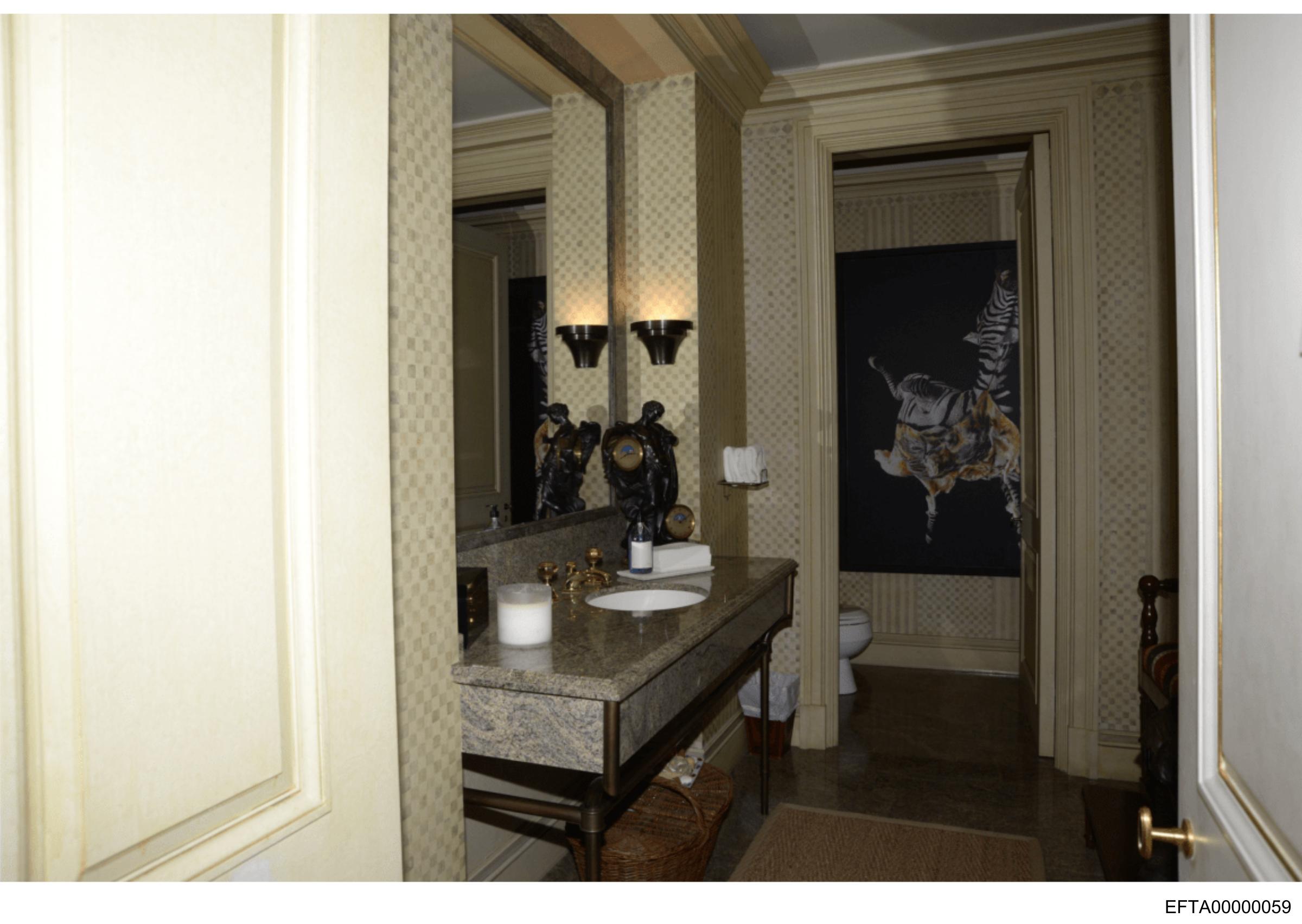 The image depicts an interior space that appears to be a hallway with high ceilings and classical architectural features such as crown molding and paneled walls.