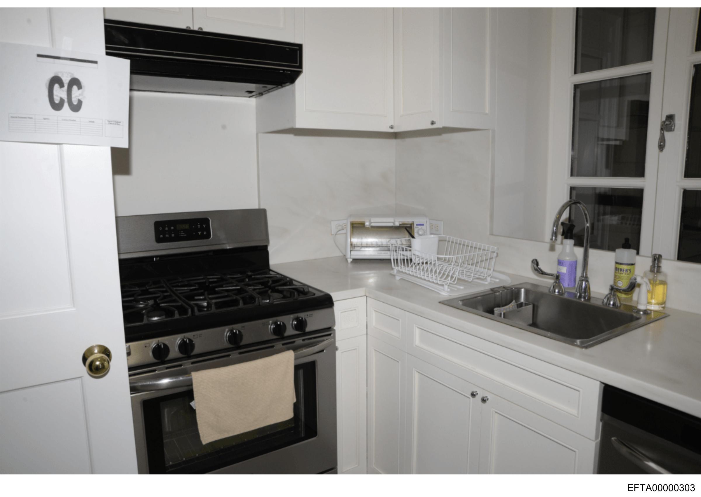The image depicts a kitchen interior with various appliances and fixtures.