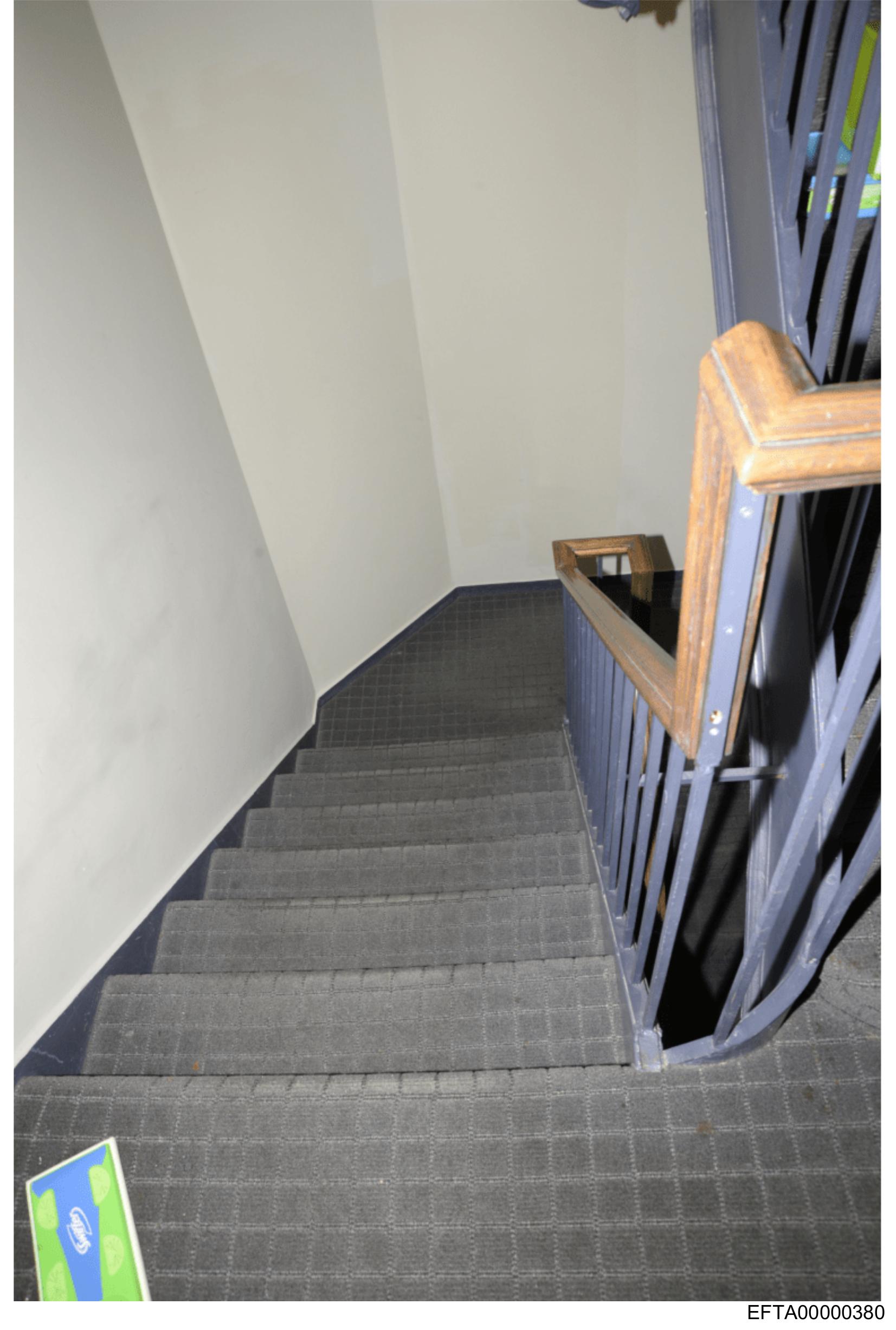 The image shows a staircase with a handrail on the left side.
