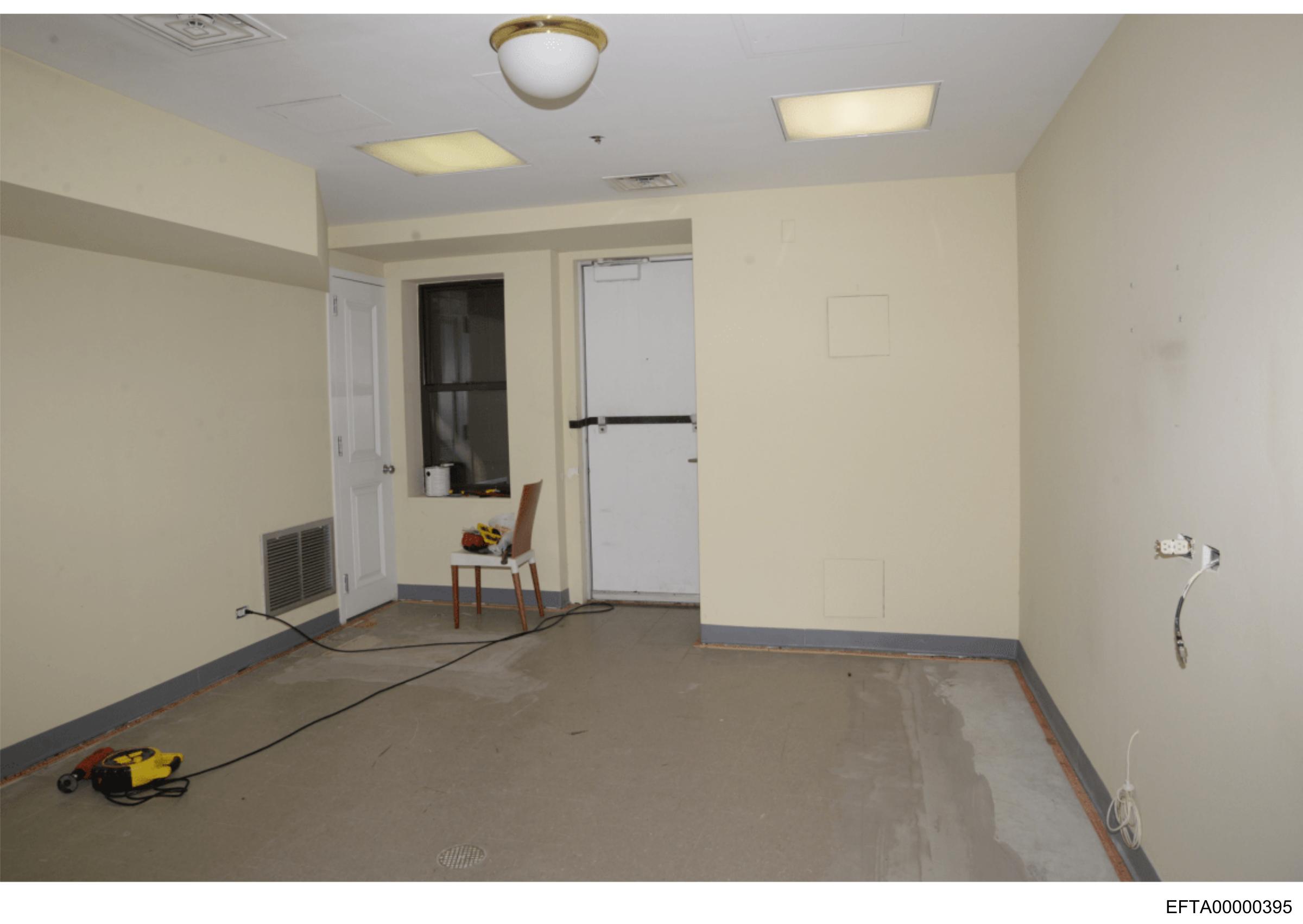 The image shows an interior space that appears to be under construction or renovation.