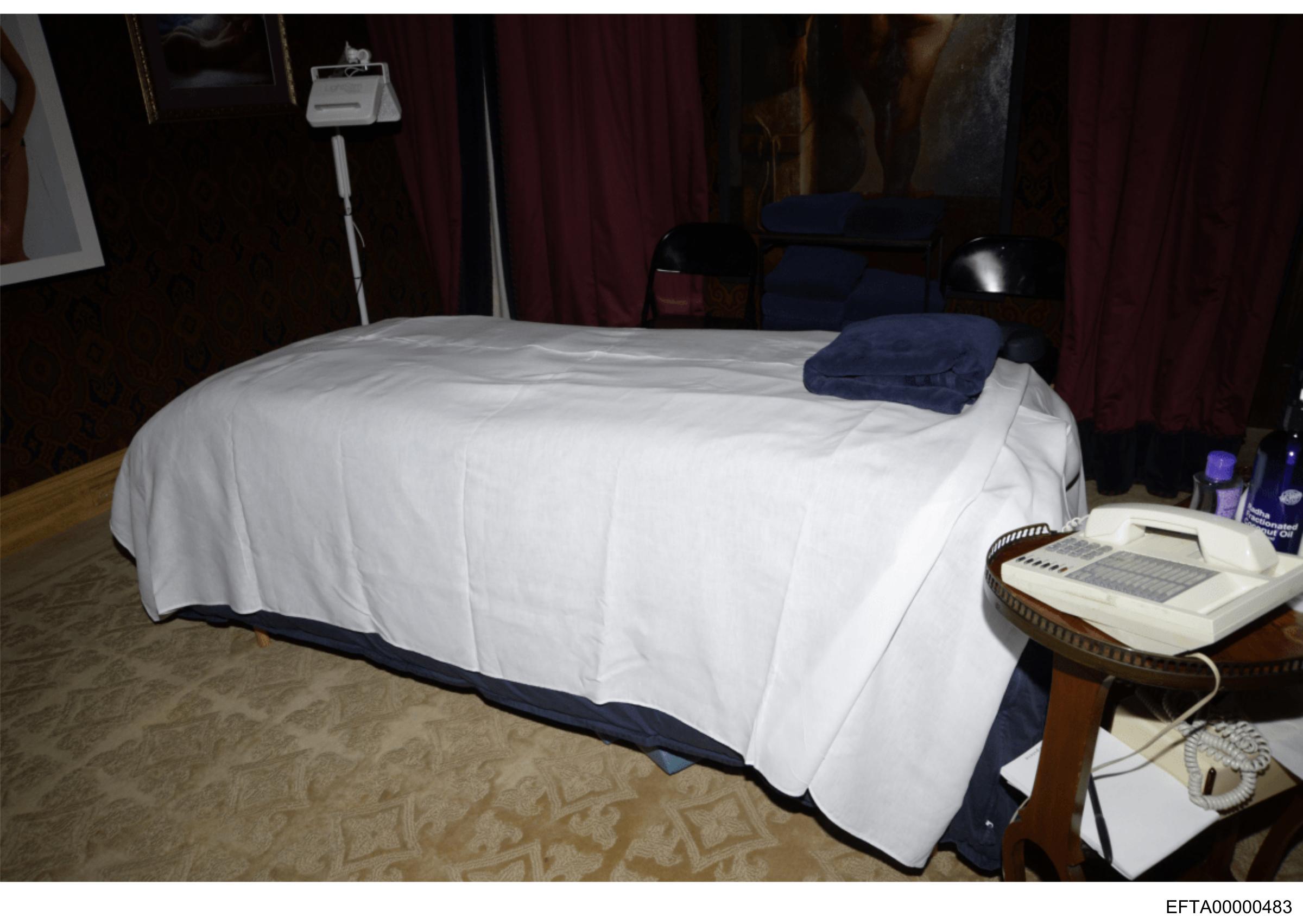 The image shows a neatly made hospital bed with a white sheet and blanket.